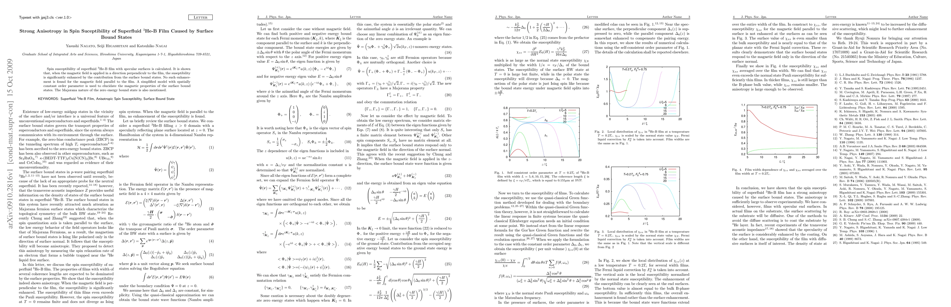 The spin susceptibility of 3He-B film is significantly enhanced when a magnetic field is applied perpendicular to the surface due to bound states, not seen in parallel fields.