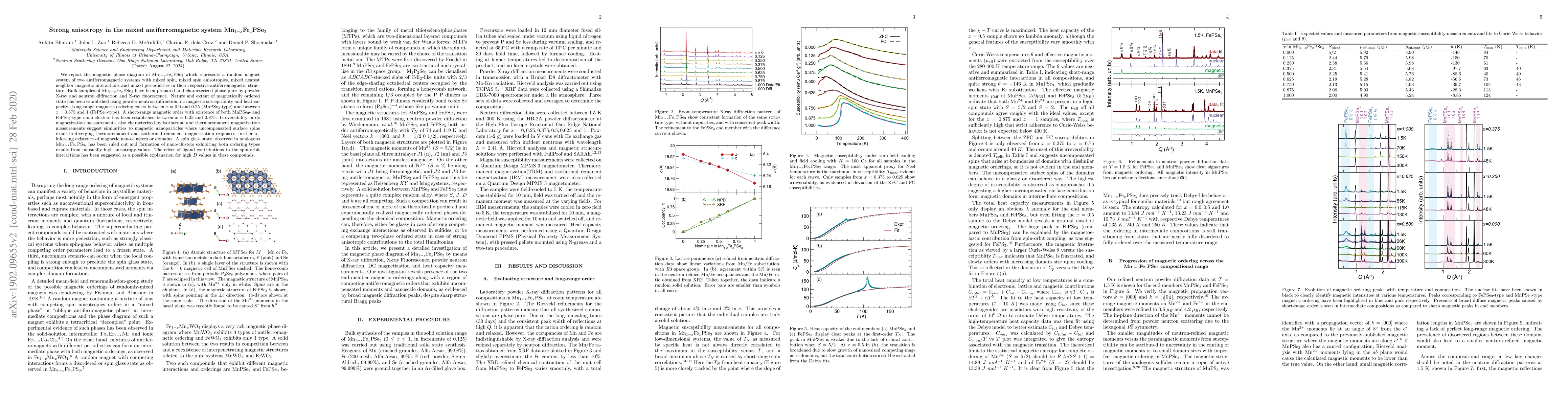 We report the magnetic phase diagram of Mn$_{1-x}$Fe$_{x}$PSe$_3$ which represents a random magnet system of two antiferromagnetic systems with mixed spin, mixed spin anisotropies, mixed nearest neighbor magnetic interactions and mixed periodicities in their respective antiferromagnetic structure. Bulk samples of Mn$_{1-x}$Fe$_{x}$PSe$_3$ have been prepared and characterized phase pure by powder X-ray and neutron diffraction and X-ray fluorescence. Nature and extent of magnetically ordered state has been established using powder neutron diffraction, dc magnetic susceptibility and heat capacity. Long-range magnetic ordering exists between $x = 0.0$ and 0.25 (MnPSe$_3$-type) and between $x = 0.875$ and $1$ (FePSe$_3$-type). A short-range magnetic order with existence of both MnPSe$_3$- and FePSe$_3$-type nano-clusters has been established between $x = 0.25$ and $0.875$. Irreversibility in dc magnetization measurements, also characterized by isothermal and thermoremanent magnetization measurements suggest similarities to magnetic nanoparticles where uncompensated surface spins result in a non-zero TRM and IRM response, further reinforcing existence of magnetic nano-clusters or domains. A spin glass state, observed in analogous Mn$_{1-x}$Fe$_x$PS$_3$, has been ruled out and formation of nano-clusters exhibiting both ordering types results from unusually high anisotropy values. The effect of ligand contributions to the spin-orbit interactions has been suggested as a possible explanation for high $D$ values in these compounds.