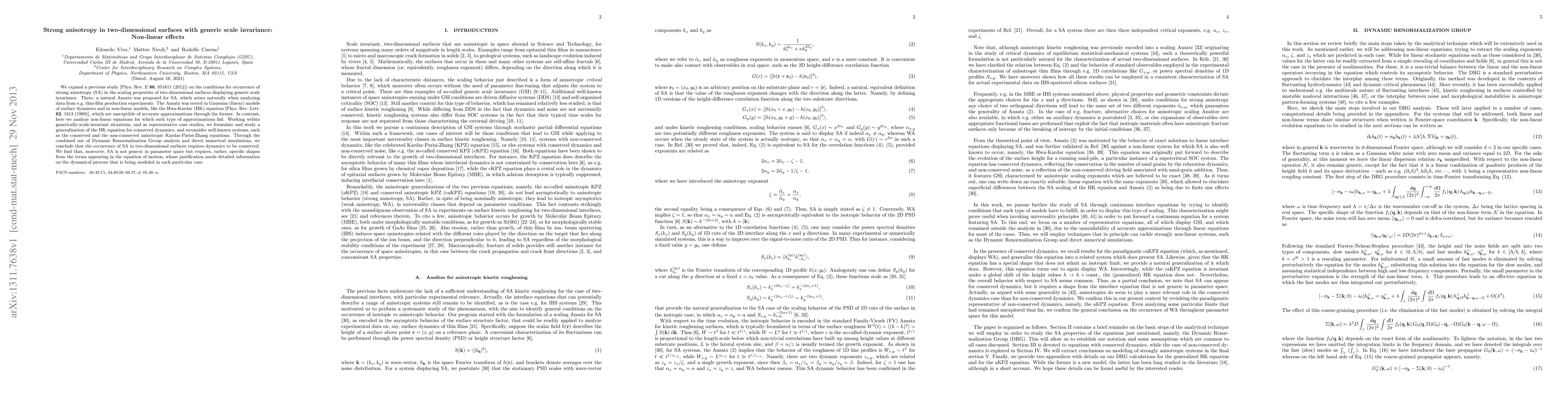 Research finds that strong anisotropy in two-dimensional surfaces requires conserved dynamics, and is not generic across parameter space; it depends on specific shapes of terms in the equation of motion.
