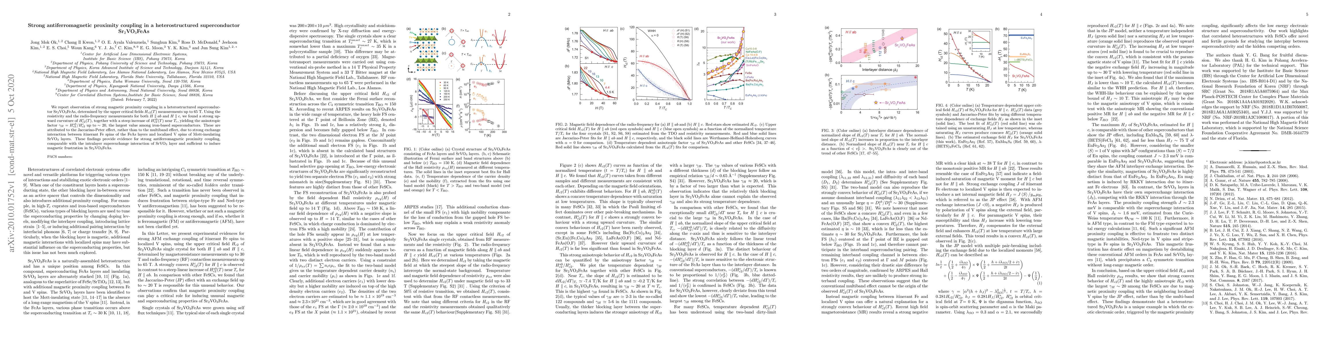 This research demonstrates strong antiferromagnetic proximity coupling in the heterostructured superconductor Sr$_2$VO$_3$FeAs, evidenced by significant upward curvature in upper critical field measurements, leading to an anisotropic factor of up to 20, the highest among iron-based superconductors. The effect is attributed to the Jaccarino-Peter phenomenon due to strong exchange interaction between Fe and V spins.