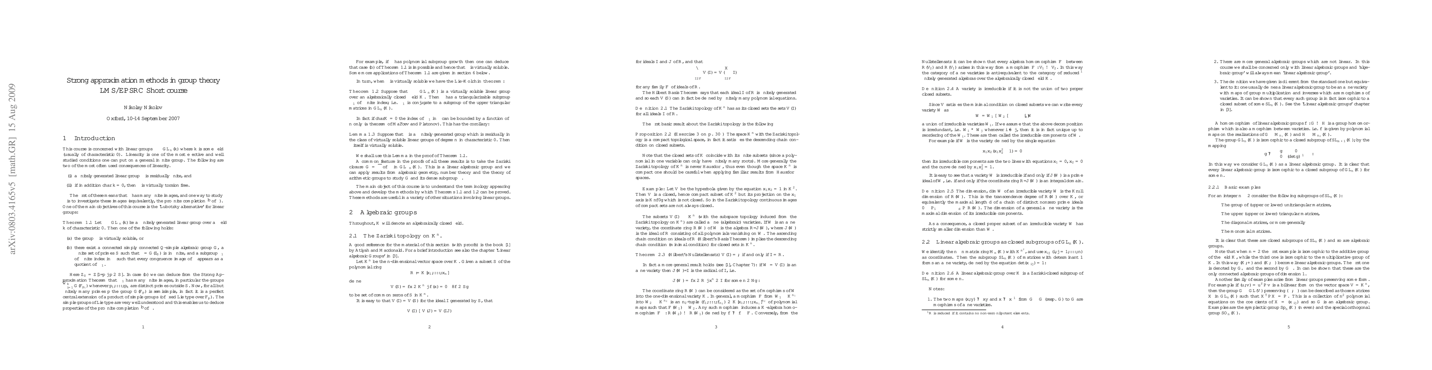 The lecture notes present a systematic approach to understanding strong approximation methods, including detailed definitions and examples relevant to linear groups.