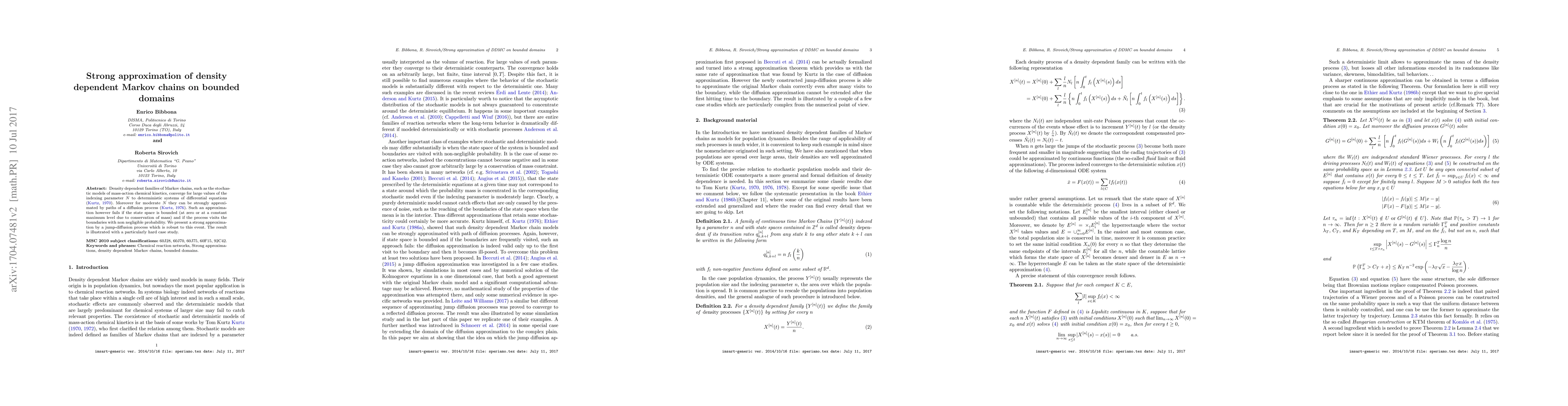 This research presents a method to strongly approximate density dependent Markov chains on bounded domains, overcoming previous limitations where approximations by diffusion processes failed when processes visited boundaries with non-negligible probability. The solution involves a jump-diffusion process, demonstrated through a challenging case study.