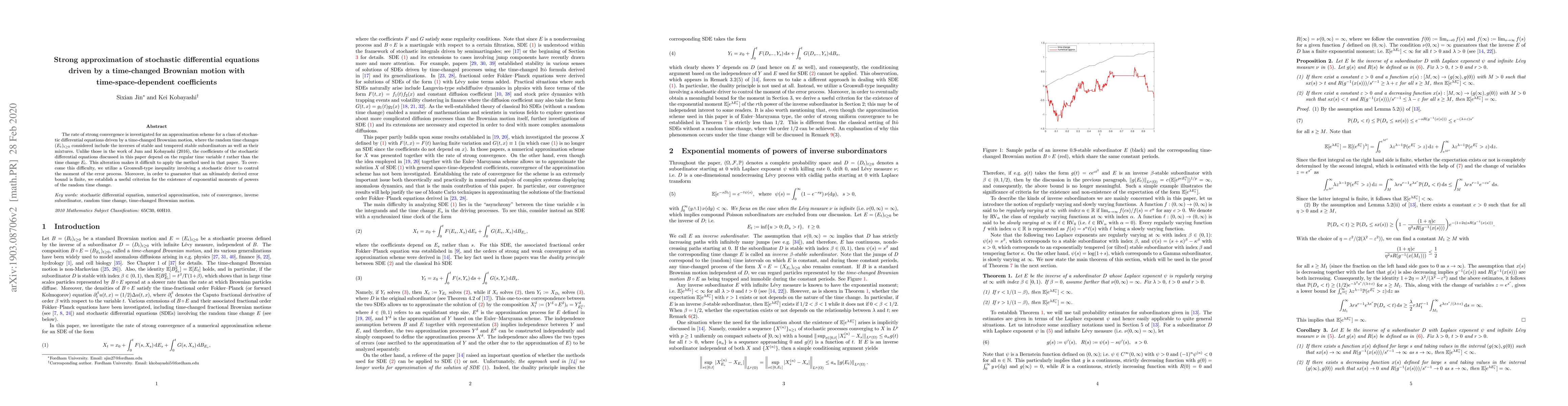 The paper introduces a novel approach using a Gronwall-type inequality to control the error moments in approximating SDEs driven by time-changed Brownian motion with time-space-dependent coefficients.