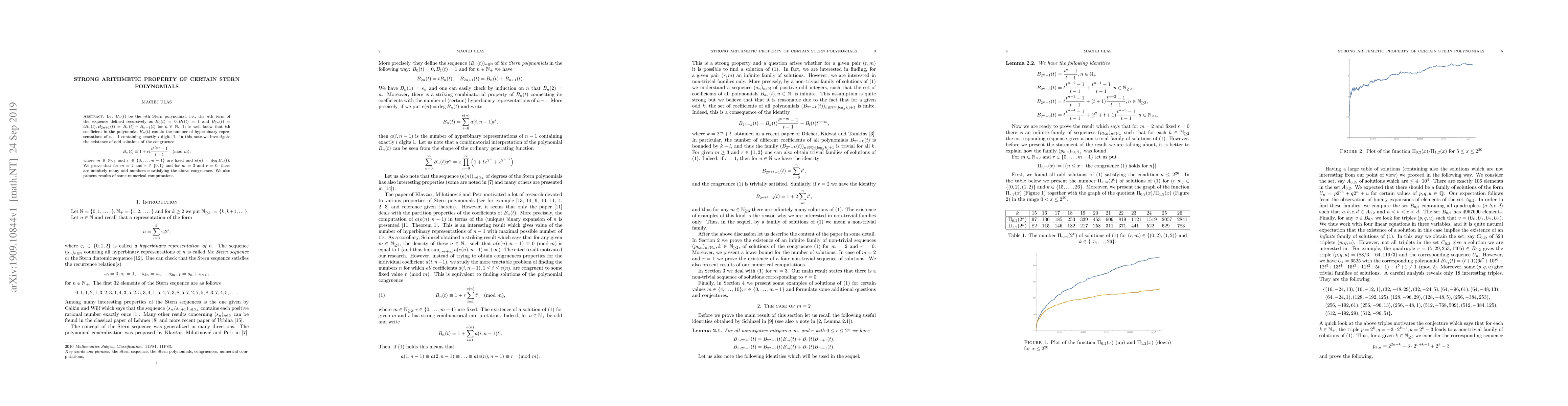 Let $B_{n}(t)$ be the $n$th Stern polynomial, i.e., the $n$th term of the sequence defined recursively as $B_{0}(t)=0, B_{1}(t)=1$ and $B_{2n}(t)=tB_{n}(t), B_{2n+1}(t)=B_{n}(t)+B_{n-1}(t)$ for $n\in\N$. It is well know that $i$th coefficient in the polynomial $B_{n}(t)$ counts the number of hyperbinary representations of $n-1$ containing exactly $i$ digits 1. In this note we investigate the existence of odd solutions of the congruence \begin{equation*} B_{n}(t)\equiv 1+rt\frac{t^{e(n)}-1}{t-1}\pmod{m}, \end{equation*} where $m\in\N_{\geq 2}$ and $r\in\{0,\ldots,m-1\}$ are fixed and $e(n)=\op{deg}B_{n}(t)$. We prove that for $m=2$ and $r\in\{0,1\}$ and for $m=3$ and $r=0$, there are infinitely many odd numbers $n$ satisfying the above congruence. We also present results of some numerical computations.