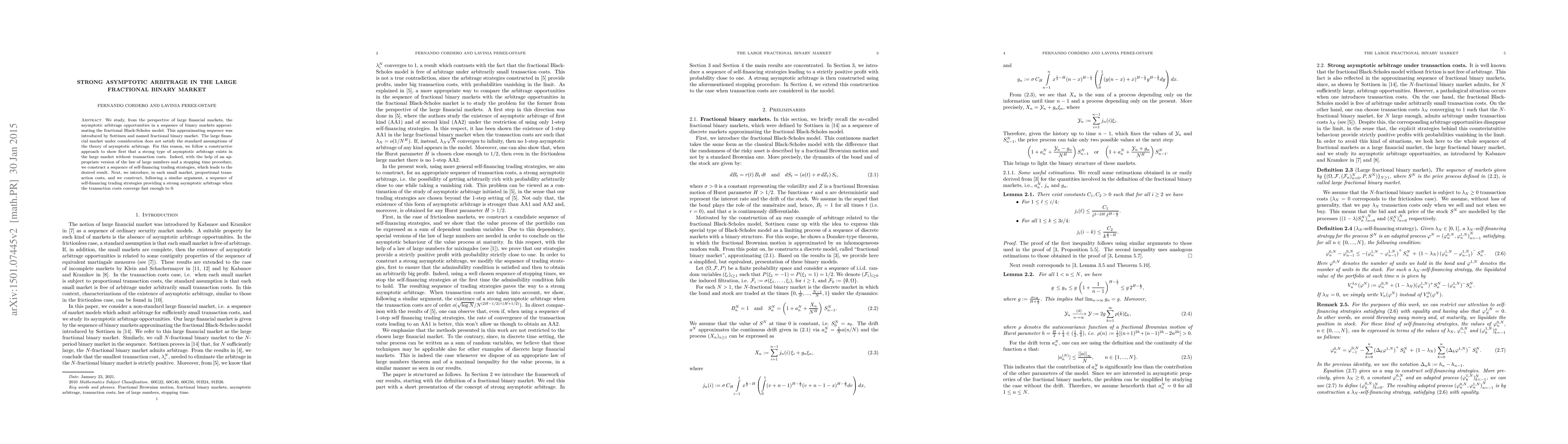 We study, from the perspective of large financial markets, the asymptotic arbitrage opportunities in a sequence of binary markets approximating the fractional Black-Scholes model. This approximating sequence was introduced by Sottinen and named fractional binary market. The large financial market under consideration does not satisfy the standard assumptions of the theory of asymptotic arbitrage. For this reason, we follow a constructive approach to show first that a strong type of asymptotic arbitrage exists in the large market without transaction costs. Indeed, with the help of an appropriate version of the law of large numbers and a stopping time procedure, we construct a sequence of self-financing strategies, which leads to the desired result. Next, we introduce, in each small market, proportional transaction costs, and we construct, following a similar argument, a sequence of self-financing strategies providing a strong asymptotic arbitrage when the transaction costs converge fast enough to 0.