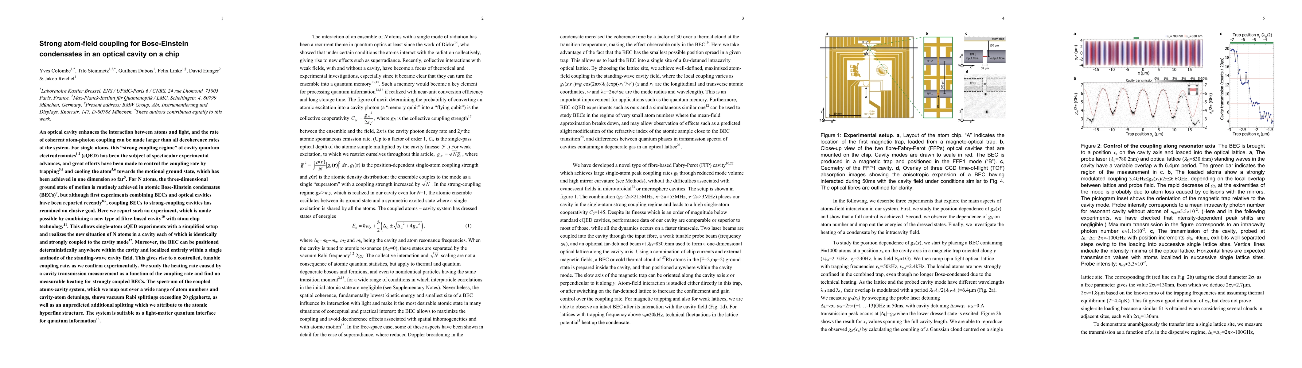 This paper reports the first successful coupling of a Bose-Einstein condensate (BEC) to an optical cavity on a chip, achieving strong atom-field coupling and demonstrating a controlled, tunable interaction rate without measurable heating. The experiment uses a fibre-based cavity and atom chip technology to achieve vacuum Rabi splittings exceeding 20 GHz.