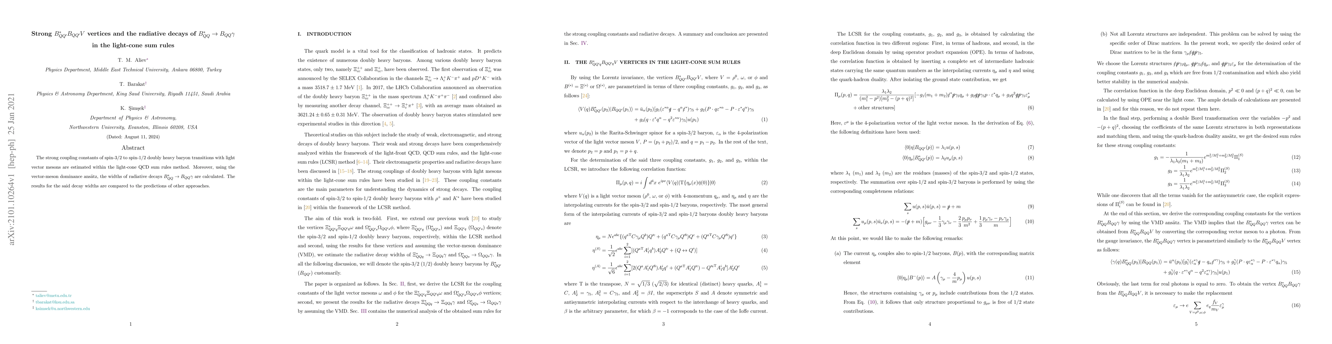 Researchers used light-cone QCD sum rules to estimate strong coupling constants for doubly heavy baryon transitions into light vector mesons. They also calculated radiative decay widths of $B_{QQ}^* o B_{QQ} heta$ using the vector-meson dominance ansatz, comparing their results with other approaches.
