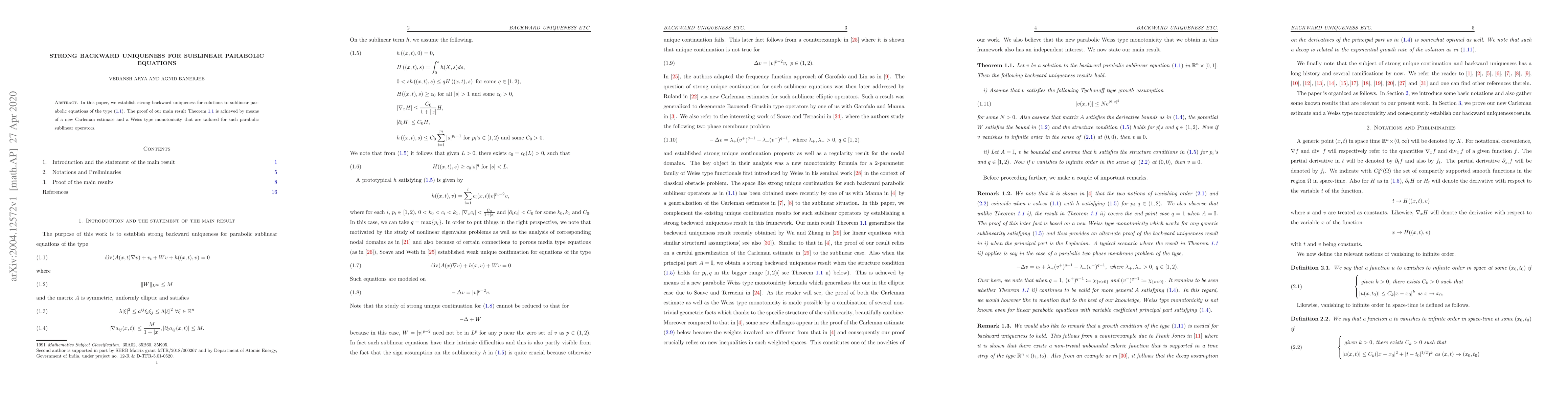 Researchers establish strong backward uniqueness for solutions to sublinear parabolic equations, using a new Carleman estimate and monotonicity property.