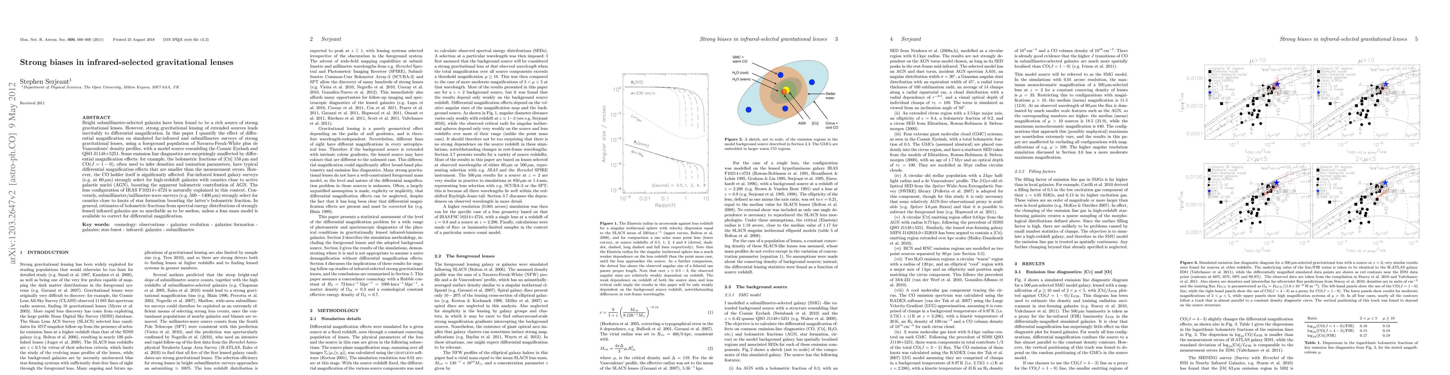 Bright submm-selected galaxies have been found to be a rich source of strong gravitational lenses. However, strong gravitational lensing of extended sources leads inevitably to differential magnification. In this paper I quantify the effect of differential magnification on simulated far-infrared and submm surveys of strong gravitational lenses, using a foreground population of Navarro-Frenk-White plus de Vaucouleurs' density profiles, with a model source resembling the Cosmic Eyelash and QSO J1148+5251. Some emission line diagnostics are surprisingly unaffected by differential magnification effects: for example, the bolometric fractions of [C II] 158um and CO(J=1-0), often used to infer densities and ionisation parameters, have typical differential magnification effects that are smaller than the measurement errors. However, the CO ladder itself is significantly affected. Far-infrared lensed galaxy surveys (e.g. at 60um) strongly select for high-redshift galaxies with caustics close to AGN, boosting the apparent bolometric contribution of AGN. The lens configuration of IRAS F10214+4724 is naturally explained in this context. Conversely, submm/mm-wave surveys (e.g. 500-1400um) strongly select for caustics close to knots of star formation boosting the latter's bolometric fraction. In general, estimates of bolometric fractions from spectral energy distributions of strongly lensed infrared galaxies are so unreliable as to be useless, unless a lens mass model is available to correct for differential magnification.