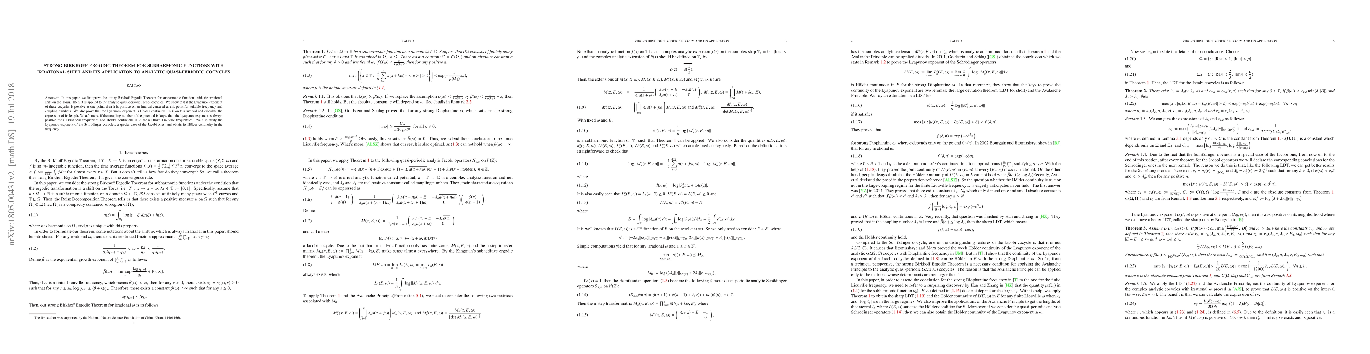 In this paper, we first prove the strong Birkhoff Ergodic Theorem for subharmonic functions with the irrational shift on the Torus. Then, it is applied to the analytic quasi-periodic Jacobi cocycles. We show that if the Lyapunov exponent of these cocycles is positive at one point, then it is positive on an interval centered at this point for suitable frequency and coupling numbers. We also prove that the Lyapunov exponent is H\"older continuous in $E$ on this interval and calculate the expression of its length. What's more, if the coupling number of the potential is large, then the Lyapunov exponent is always positive for all irrational frequencies and H\"older continuous in $E$ for all finite Liouville frequencies. We also study the Lyapunov exponent of the Schr\"odinger cocycles, a special case of the Jacobi ones, and obtain its H\"older continuity in the frequency.