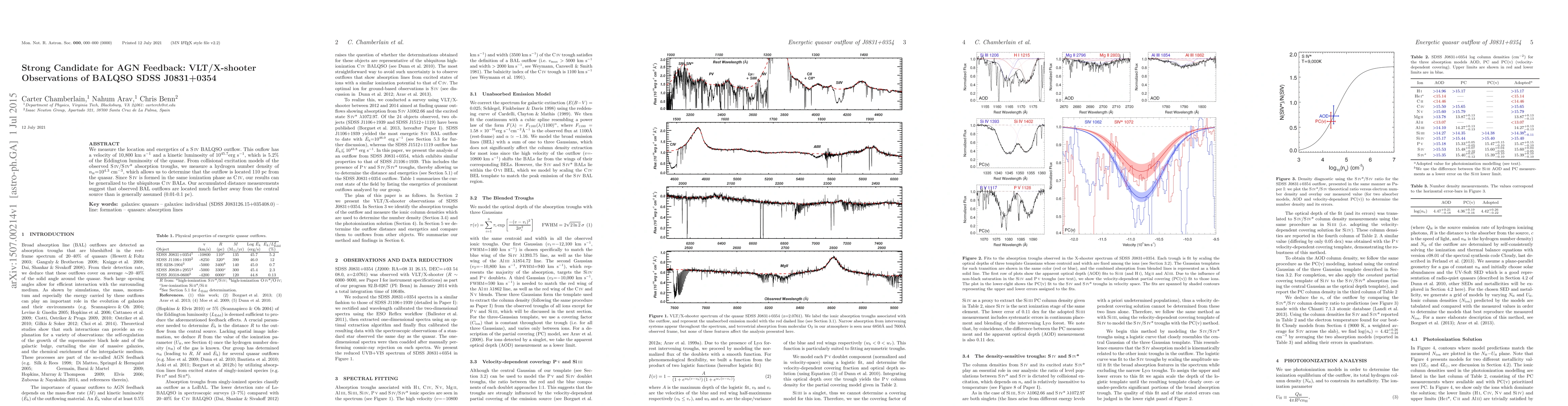 We measure the location and energetics of a SIV BALQSO outflow. This ouflow has a velocity of 10,800 km s$^{-1}$ and a kinetic luminosity of $10^{45.7}$ erg s$^{-1}$, which is 5.2% of the Eddington luminosity of the quasar. From collisional excitation models of the observed SIV$/$SIV* absorption troughs, we measure a hydrogen number density of $n_\mathrm{\scriptscriptstyle H}=10^{4.3}$ cm$^{-3}$, which allows us to determine that the outflow is located 110 pc from the quasar. Since SIV is formed in the same ionization phase as CIV, our results can be generalized to the ubiquitous CIV BALs. Our accumulated distance measurements suggest that observed BAL outflows are located much farther away from the central source than is generally assumed (0.01-0.1 pc).