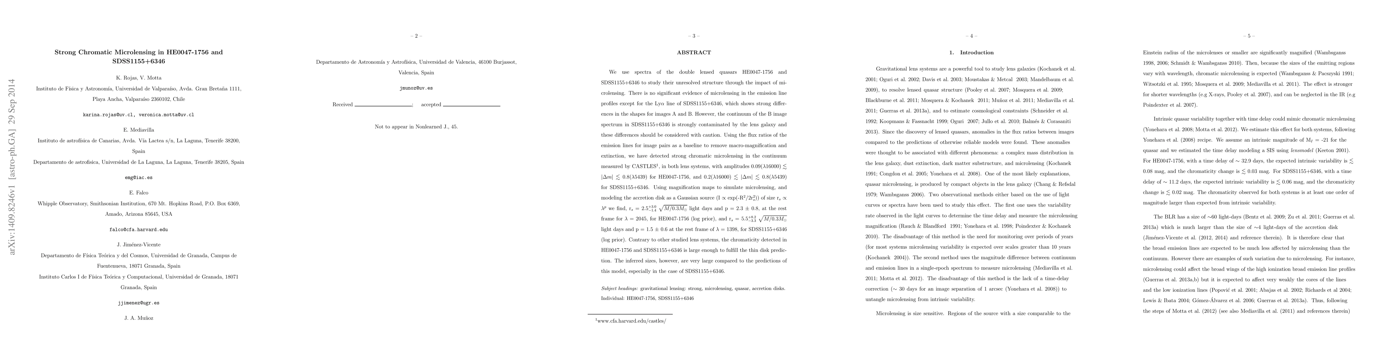 This paper investigates microlensing in two double lensed quasars, HE0047-1756 and SDSS1155+6346, finding strong chromatic microlensing in their continua but no significant microlensing in emission lines. The study reveals large inferred sizes for the accretion disks, significantly larger than model predictions.