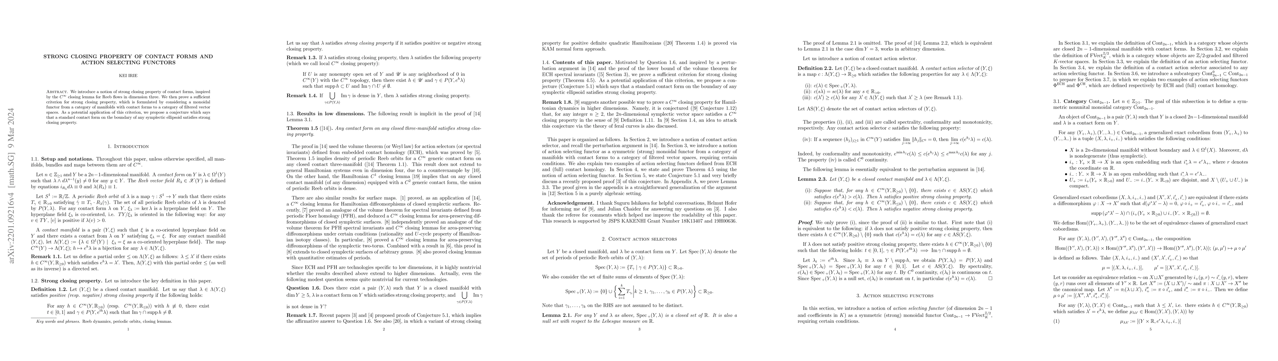 The paper introduces a strong closing property for contact forms and provides a criterion for its existence through a monoidal functor. It also proposes a conjecture regarding the property in standard contact forms on symplectic ellipsoid boundaries.