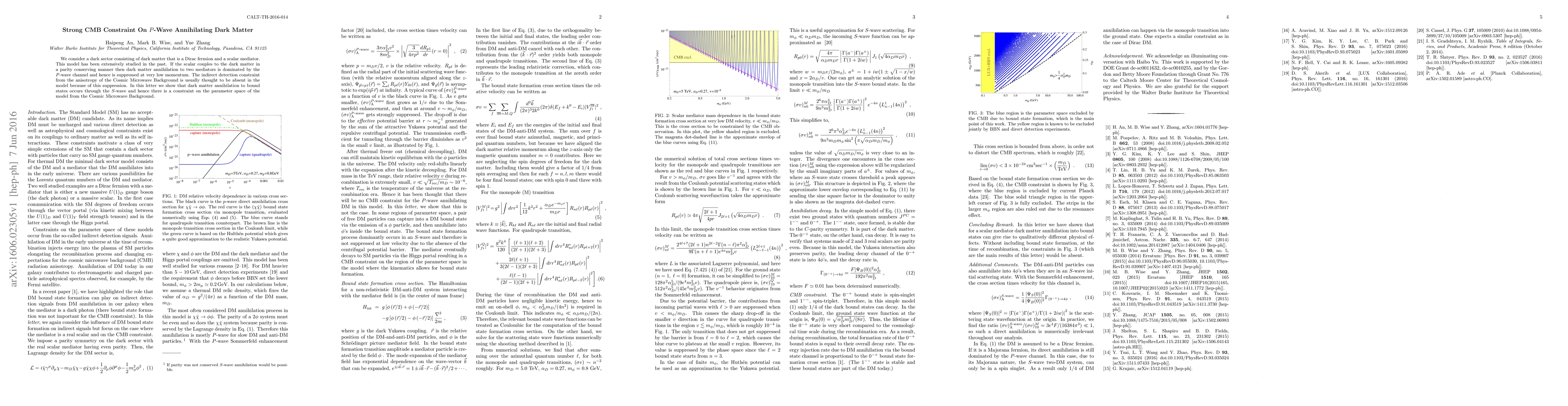 We consider a dark sector consisting of dark matter that is a Dirac fermion and a scalar mediator. This model has been extensively studied in the past. If the scalar couples to the dark matter in a parity conserving manner then dark matter annihilation to two mediators is dominated by the P-wave channel and hence is suppressed at very low momentum. The indirect detection constraint from the anisotropy of the Cosmic Microwave Background is usually thought to be absent in the model because of this suppression. In this letter we show that dark matter annihilation to bound states occurs through the S-wave and hence there is a constraint on the parameter space of the model from the Cosmic Microwave Background.