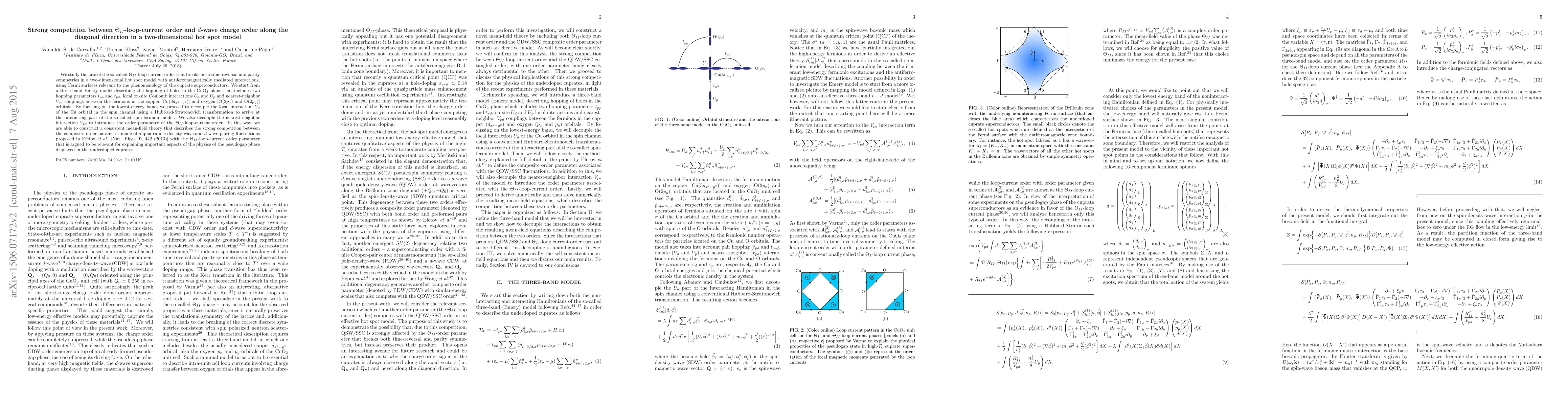 This paper investigates the interplay between $\Theta_{II}$-loop-current order and $d$-wave charge order in a two-dimensional hot spot model of cuprate superconductors, using a three-band Emery model to describe the interactions and derive a mean-field theory highlighting their competitive dynamics.