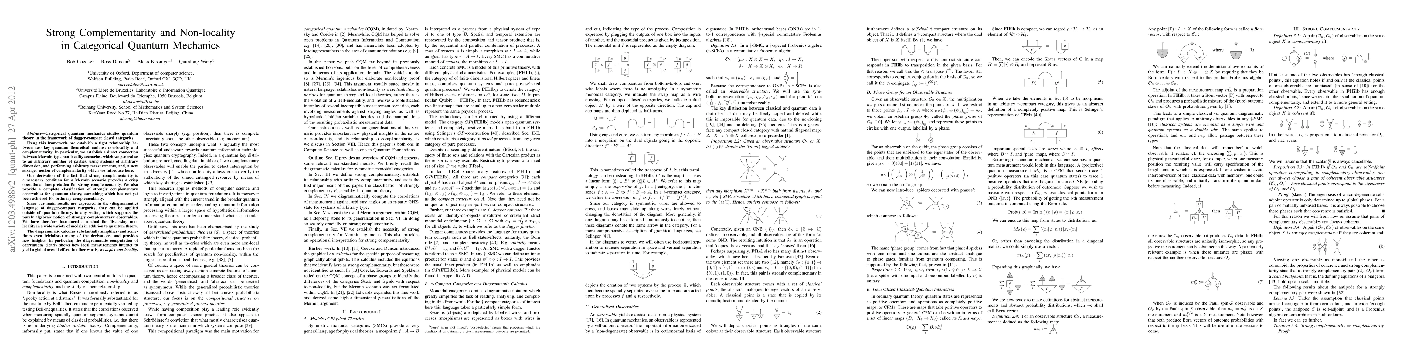 This paper establishes a strong link between non-locality and complementarity in categorical quantum mechanics, showing that strong complementarity is necessary for Mermin scenarios. It introduces a new classification of strongly complementary observables and applies the results beyond quantum theory using dagger-compact categories.