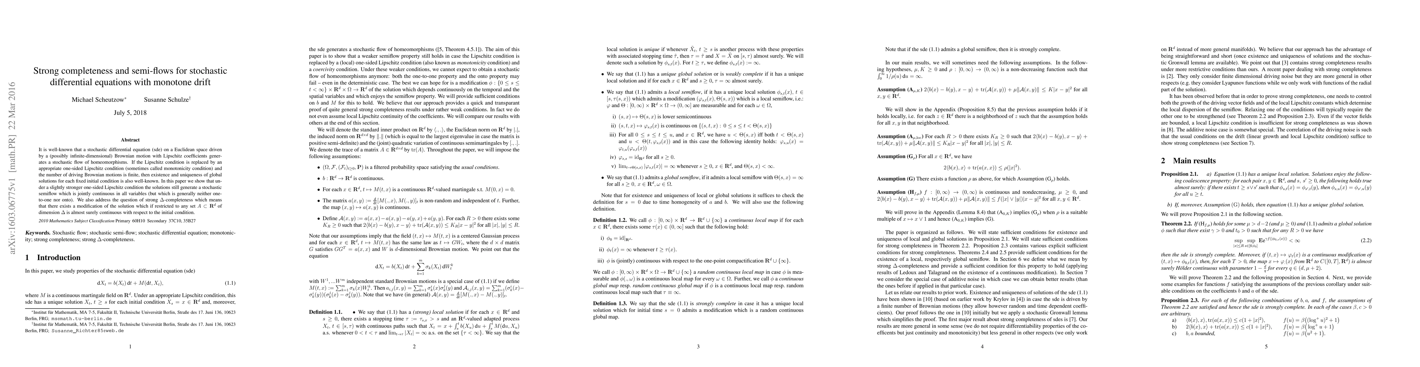 This paper investigates stochastic differential equations (SDEs) driven by Brownian motion under a stronger one-sided Lipschitz condition, demonstrating the generation of a stochastic semiflow that is jointly continuous. It also explores the concept of strong $\Delta$-completeness, showing the existence of a modified solution that is almost surely continuous on sets of dimension $\Delta$.
