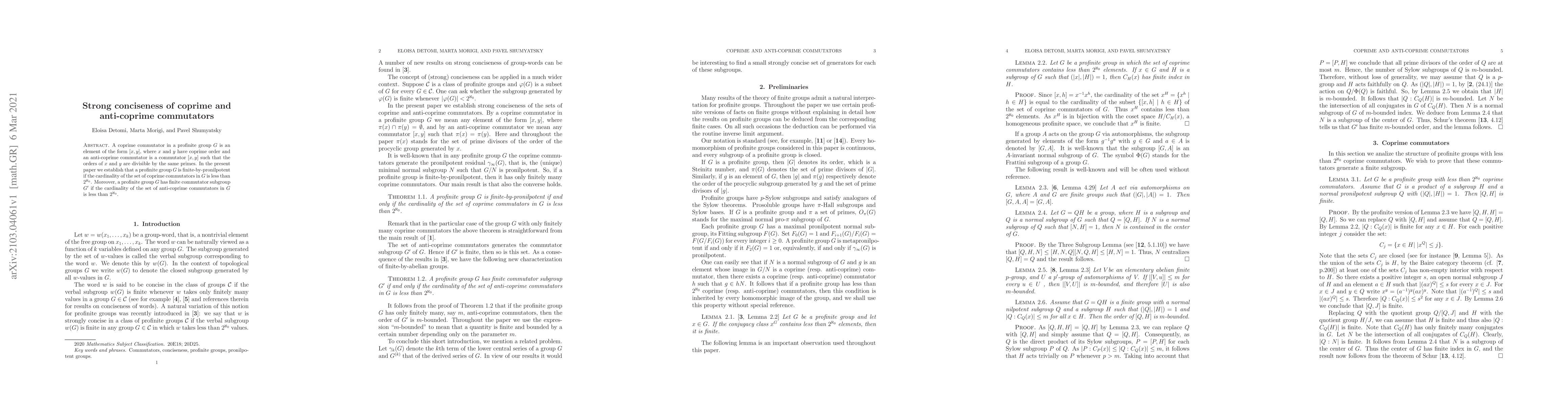 This paper proves that in a profinite group $G$, finite-by-pronilpotent structure ensues if the set of coprime commutators is less than cardinality $2^{\aleph_0}$, and $G$ has a finite commutator subgroup if the set of anti-coprime commutators is similarly constrained.