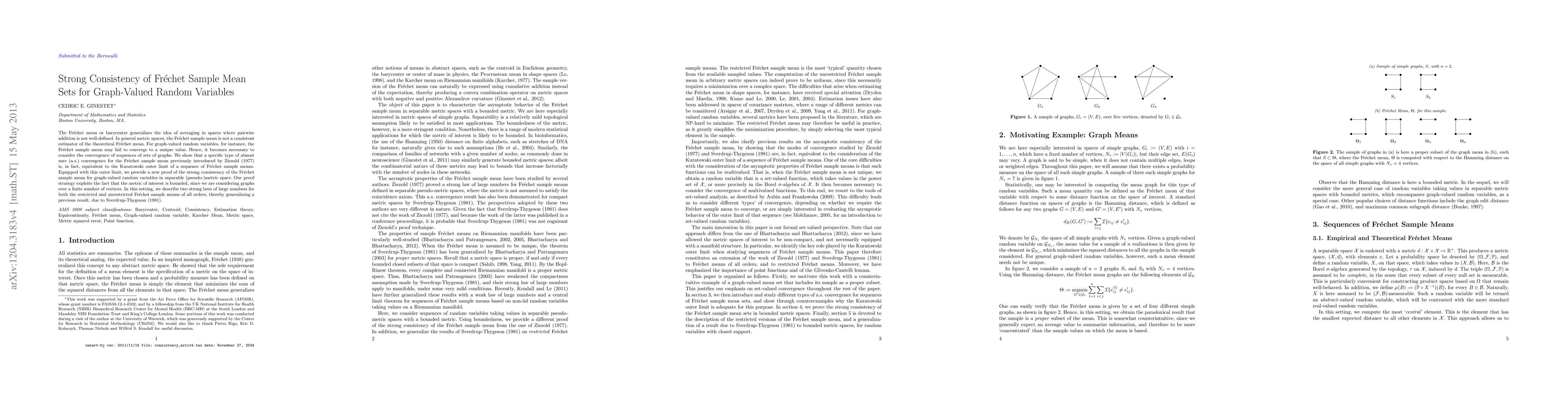 This paper demonstrates the strong consistency of the Frechet sample mean for graph-valued random variables in separable metric spaces, proving it through the Kuratowski outer limit. The authors utilize the bounded metric of graphs over a finite vertex set to establish two strong laws of large numbers for both restricted and unrestricted Frechet sample means.