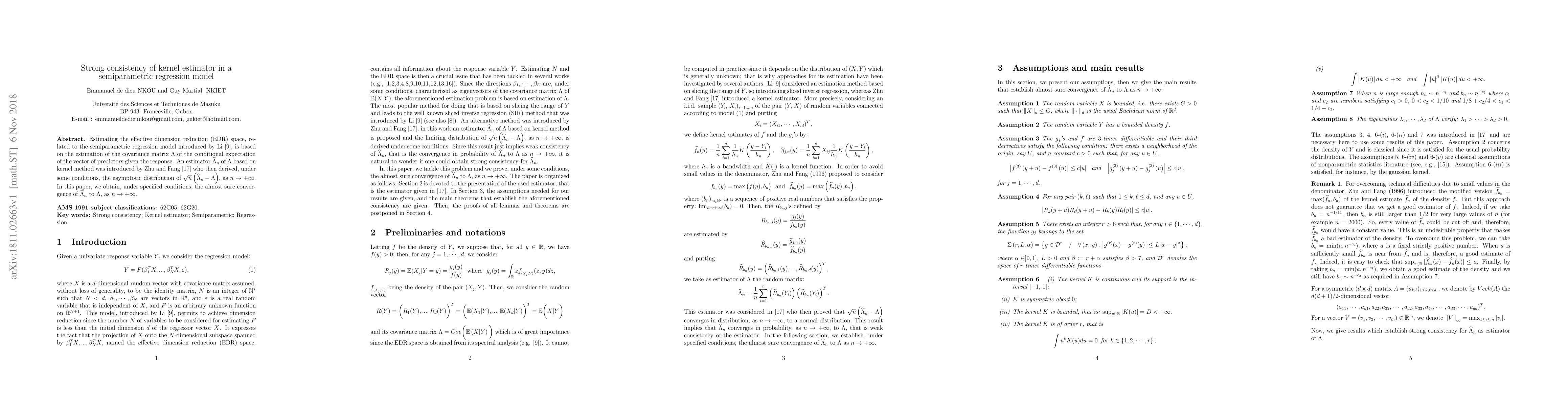 Estimating the effective dimension reduction (EDR) space, related to the semiparametric regression model introduced by Li \cite{sir}, is based on the estimation of the covariance matrix $\Lambda$ of the conditional expectation of the vector of predictors given the response. An estimator $\widehat{\Lambda}_n$ of $\Lambda $ based on kernel method was introduced by Zhu and Fang \cite{Asymptotics} who then derived, under some conditions, the asymptotic distribution of $\sqrt{n}\left(\widehat{\Lambda}_n-\Lambda\right)$, as $n\rightarrow +\infty$. In this paper, we obtain, under specified conditions, the almost sure convergence of $\widehat{\Lambda}_n$ to $\Lambda$, as $n\rightarrow +\infty$.