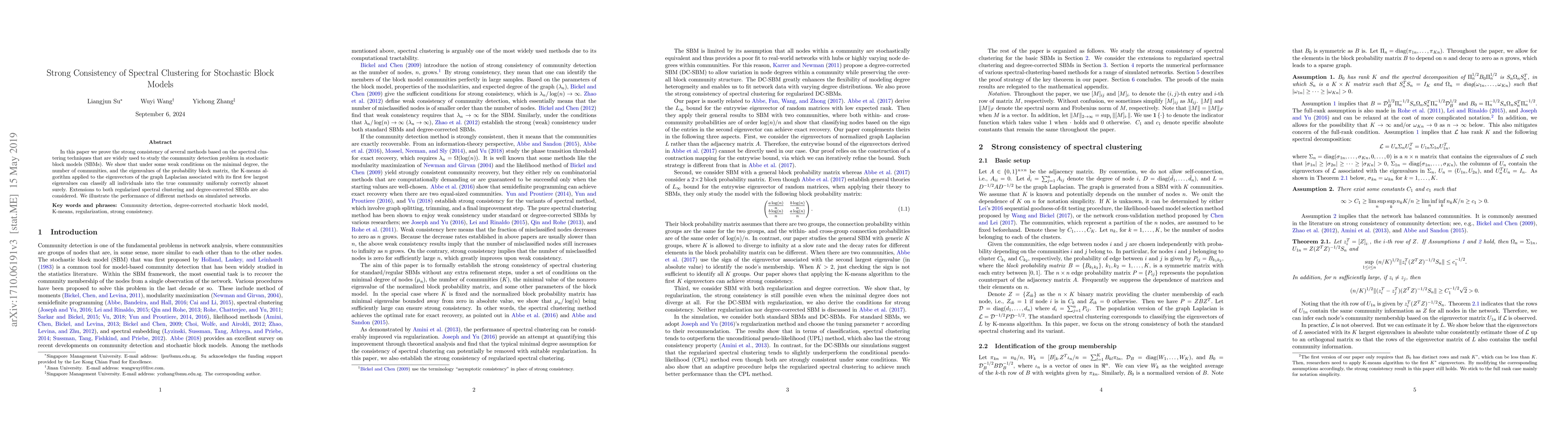 This paper demonstrates the strong consistency of spectral clustering methods for community detection in stochastic block models, showing that K-means applied to graph Laplacian eigenvectors can accurately classify communities under specific conditions. The study also extends the analysis to regularized spectral clustering and degree-corrected SBMs, supported by performance evaluations on simulated networks.