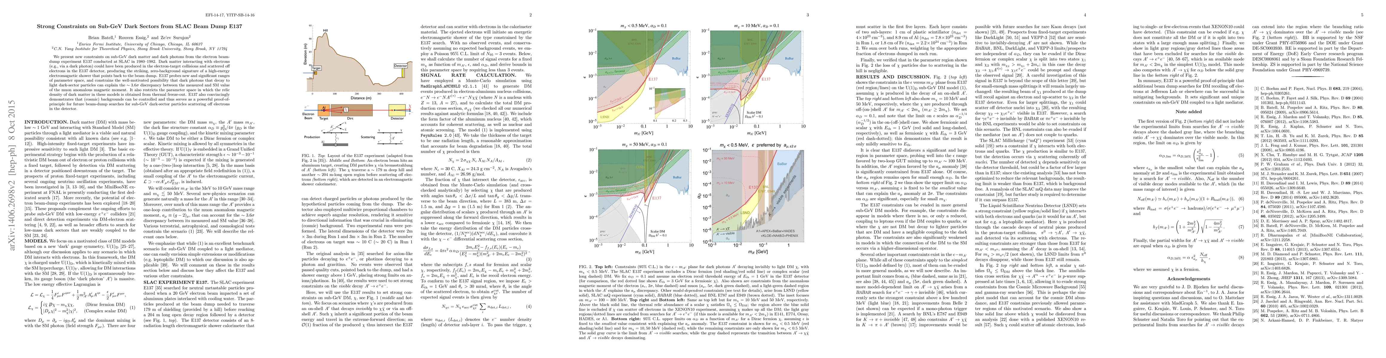 The E137 experiment at SLAC provides strong constraints on sub-GeV dark matter and dark photons, demonstrating effective control over backgrounds and serving as a proof-of-principle for future searches, while also addressing the muon anomalous magnetic moment discrepancy.