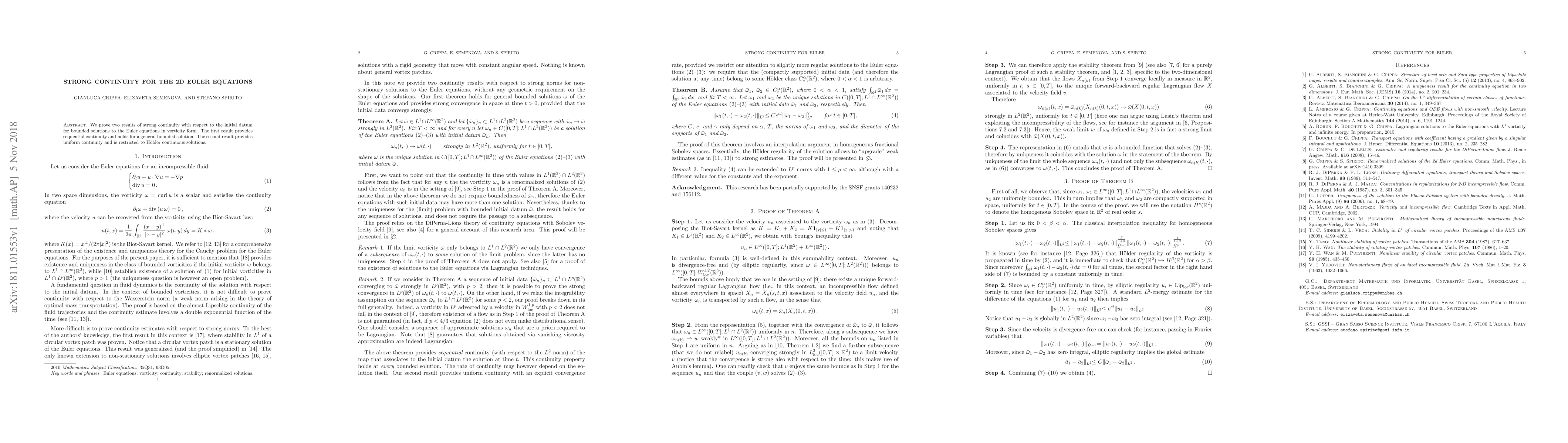 We prove two results of strong continuity with respect to the initial datum for bounded solutions to the Euler equations in vorticity form. The first result provides sequential continuity and holds for a general bounded solution. The second result provides uniform continuity and is restricted to H\"older continuous solutions.