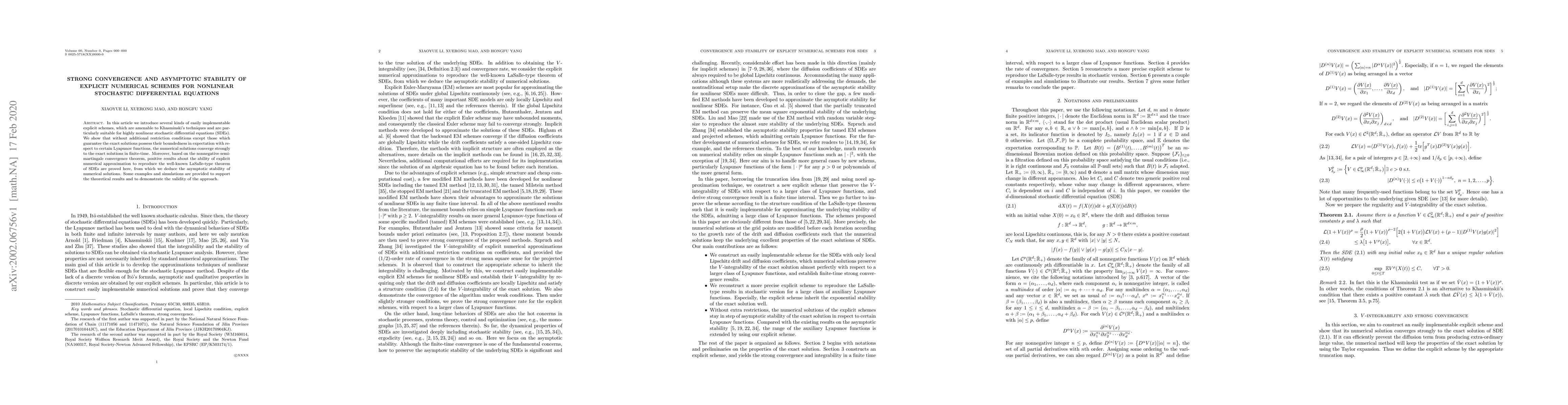 This paper introduces explicit numerical schemes for nonlinear stochastic differential equations that converge strongly to exact solutions in finite-time and exhibit asymptotic stability under certain conditions.