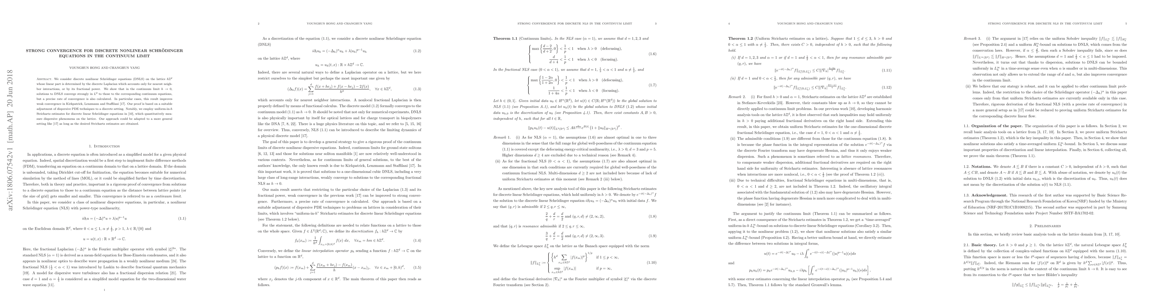This paper proves strong convergence in $L^2$ for discrete nonlinear Schrödinger equations (DNLS) in the continuum limit, providing a precise rate of convergence. It extends previous weak convergence results by employing uniform Strichartz estimates to handle dispersive phenomena on the lattice.