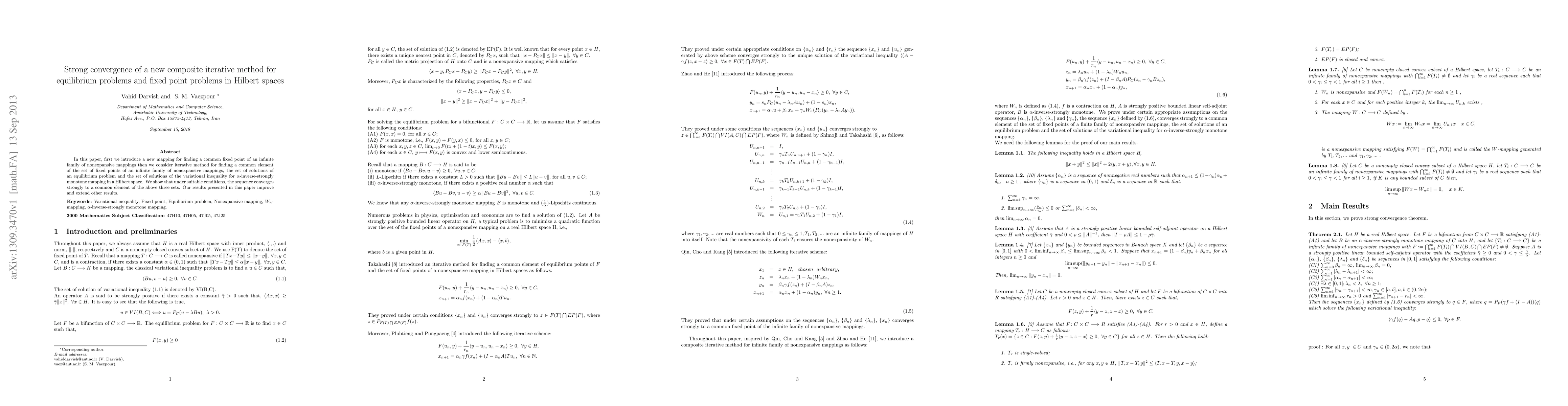In this paper, first we introduce a new mapping for finding a common fixed point of an infinite family of nonexpansive mappings then we consider iterative method for finding a common element of the set of fixed points of an infinite family of nonexpansive mappings, the set of solutions of an equilibrium problem and the set of solutions of the variational inequality for $\alpha$-inverse-strongly monotone mapping in a Hilbert space. We show that under suitable conditions, the sequence converges strongly to a common element of the above three sets. Our results presented in this paper improve and extend other results.