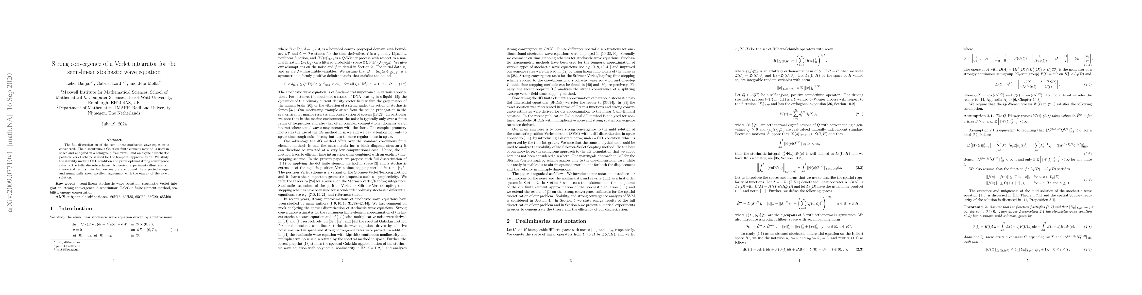 Researchers develop a Verlet integrator for solving the semi-linear stochastic wave equation, demonstrating strong convergence rates and excellent agreement with exact solutions.