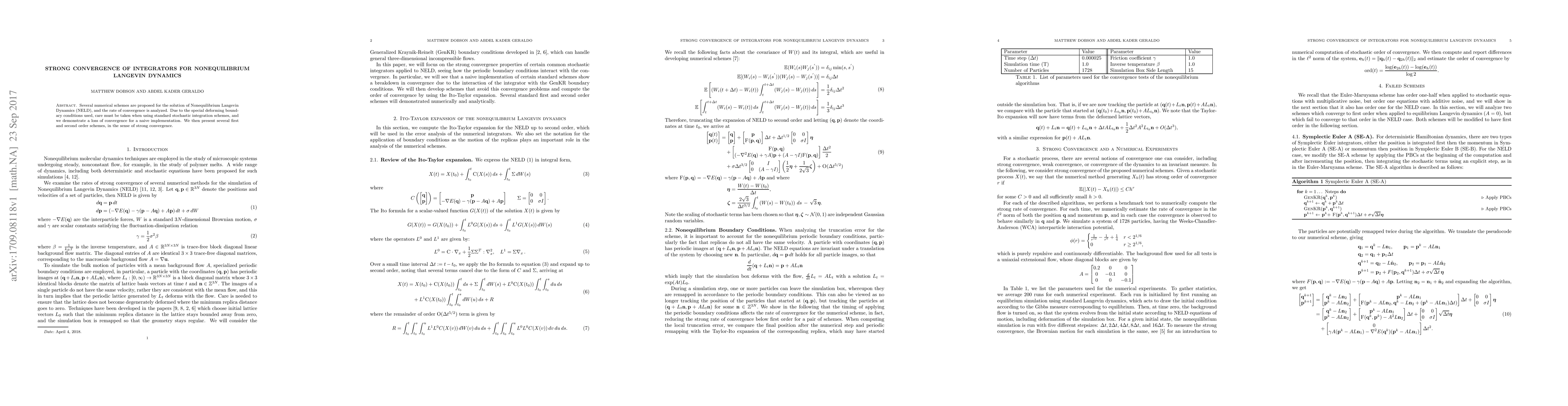 This paper proposes several numerical schemes for solving Nonequilibrium Langevin Dynamics (NELD) and analyzes their convergence rates. It highlights the loss of convergence in standard stochastic integration methods due to special deforming boundary conditions and introduces first and second order schemes for strong convergence.