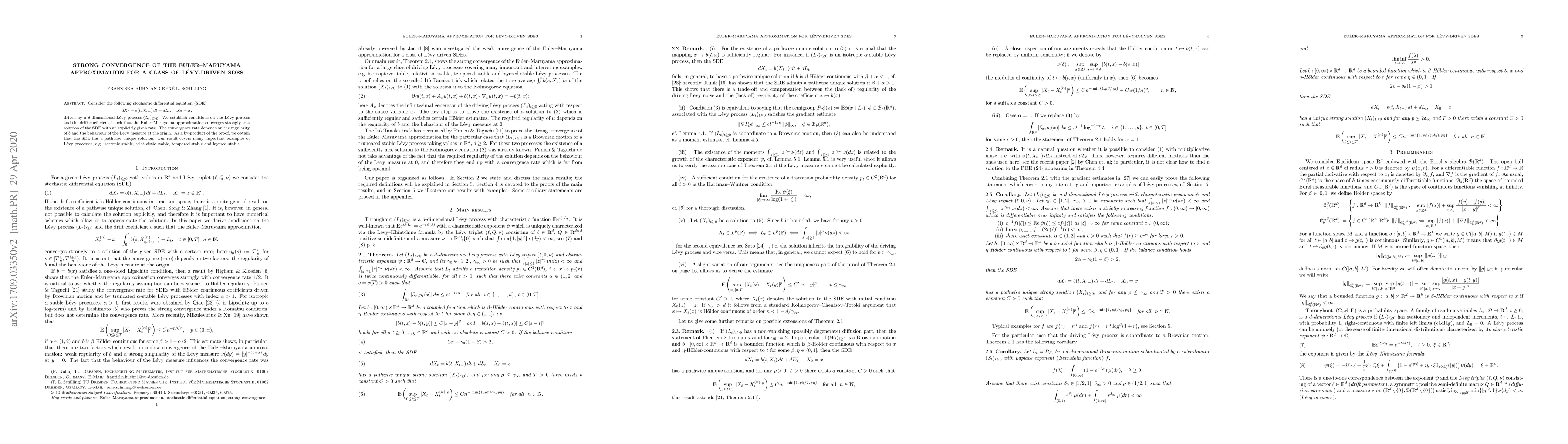 Consider the following stochastic differential equation (SDE) $$dX_t = b(t,X_{t-}) \, dt+ dL_t, \quad X_0 = x,$$ driven by a $d$-dimensional L\'evy process $(L_t)_{t \geq 0}$. We establish conditions on the L\'evy process and the drift coefficient $b$ such that the Euler--Maruyama approximation converges strongly to a solution of the SDE with an explicitly given rate. The convergence rate depends on the regularity of $b$ and the behaviour of the L\'evy measure at the origin. As a by-product of the proof, we obtain that the SDE has a pathwise unique solution. Our result covers many important examples of L\'evy processes, e.g. isotropic stable, relativistic stable, tempered stable and layered stable.