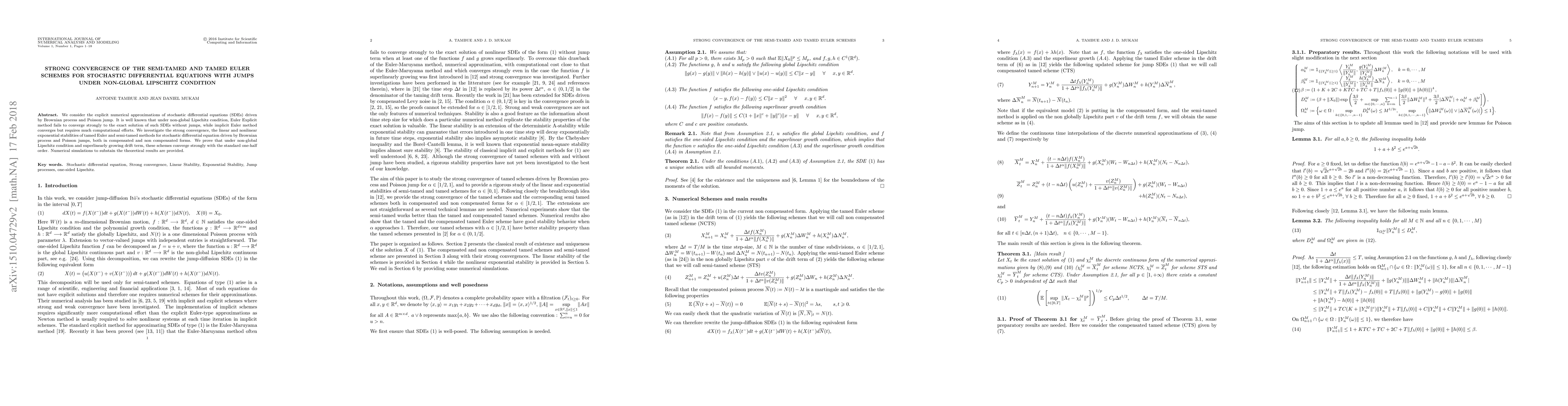 This paper investigates the strong convergence of tamed and semi-tamed Euler schemes for SDEs with jumps under non-global Lipschitz conditions. It proves that these methods converge strongly with the standard one-half order, offering a computationally efficient alternative to the implicit Euler method.