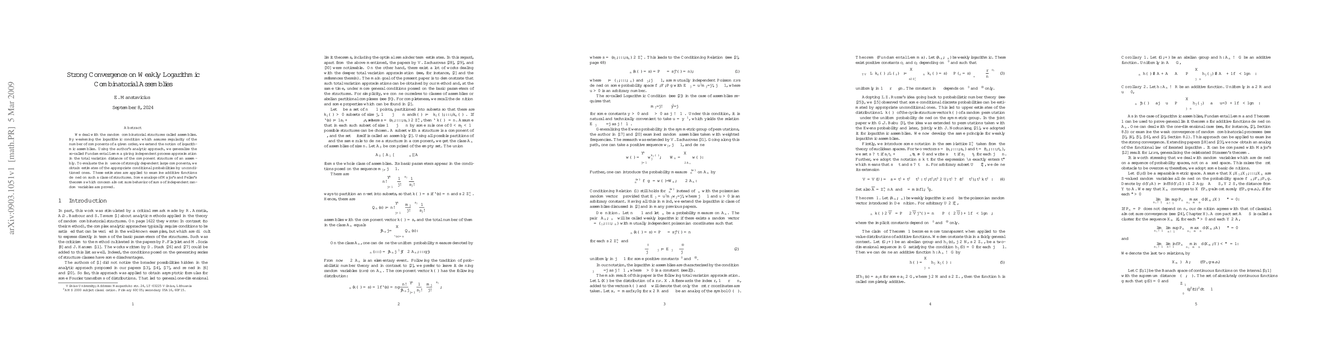 This paper explores weakly logarithmic combinatorial assemblies, extending the concept of logarithmic assemblies and proving convergence results. It uses an analytic approach to generalize the Fundamental Lemma, providing approximations for component structures and proving analogs of Major's and Feller's theorems for sums of independent random variables.