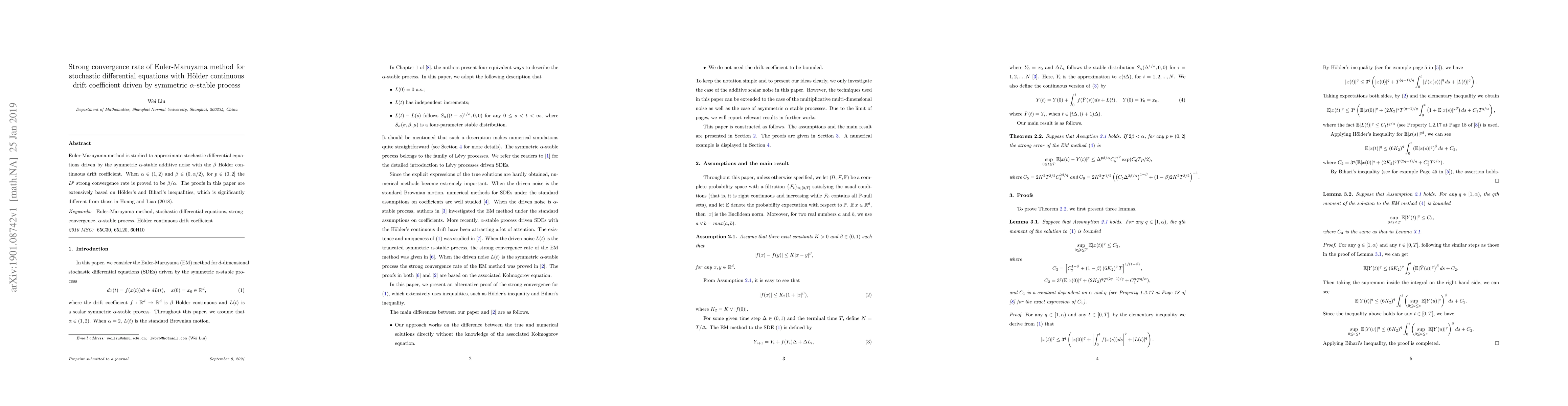 This paper investigates the Euler-Maruyama method for approximating stochastic differential equations driven by symmetric $\alpha$-stable noise, showing a strong convergence rate of $p\beta/\alpha$ under specific conditions on $\alpha$ and $\beta$. The proofs leverage H\"older's and Bihari's inequalities, differing from previous methods.