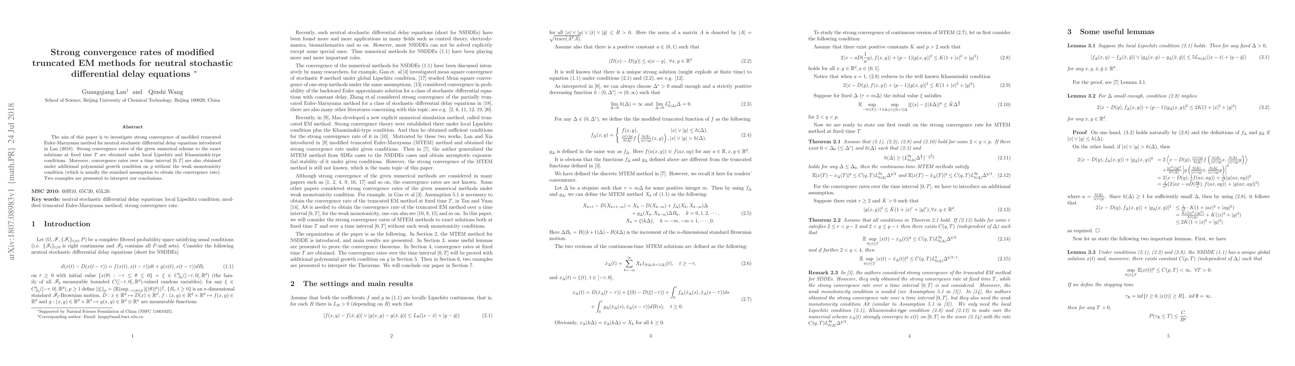 The aim of this paper is to investigate strong convergence of modified truncated Euler-Maruyama method for neutral stochastic differential delay equations introduced in Lan (2018). Strong convergence rates of the given numerical scheme to the exact solutions at fixed time $T$ are obtained under local Lipschitz and Khasminskii-type conditions. Moreover, convergence rates over a time interval $[0,T]$ are also obtained under additional polynomial growth condition on $g$ without the weak monotonicity condition (which is usually the standard assumption to obtain the convergence rate). Two examples are presented to interpret our conclusions.