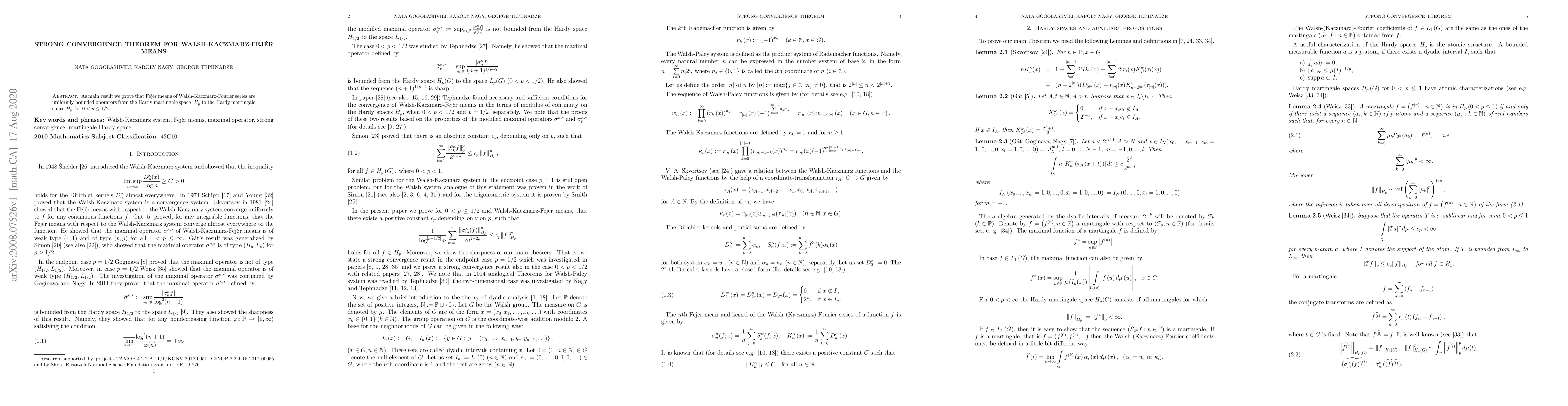 This paper proves that the Fejér means of Walsh-Kaczmarz-Fourier series are uniformly bounded operators from the Hardy martingale space $H_p$ to $H_p$ for $0<p\leq 1/2$. This establishes a strong convergence theorem for these series.