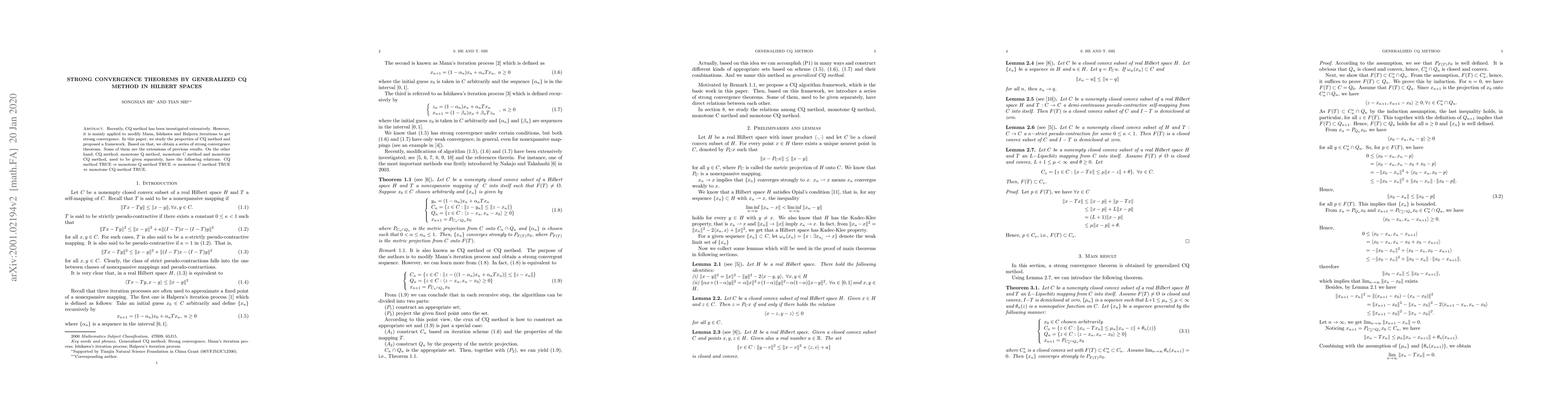 Recently, CQ method has been investigated extensively. However, it is mainly applied to modify Mann, Ishikawa and Halpern iterations to get strong convergence. In this paper, we study the properties of CQ method and proposed a framework. Based on that, we obtain a series of strong convergence theorems. Some of them are the extensions of previous results. On the other hand, CQ method, monotone Q method, monotone C method and monotone CQ method, used to be given separately, have the following relations: CQ method TRUE $\Rightarrow$ monotone Q method TRUE $\Rightarrow$ monotone C method TRUE $\Leftrightarrow$ monotone CQ method TRUE.