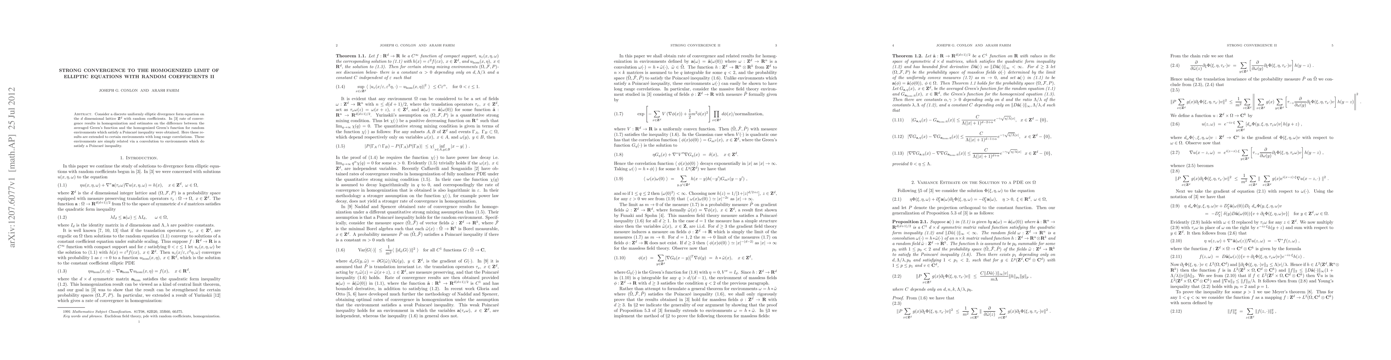 Consider a discrete uniformly elliptic divergence form equation on the $d$ dimensional lattice $\Z^d$ with random coefficients. In [3] rate of convergence results in homogenization and estimates on the difference between the averaged Green's function and the homogenized Green's function for random environments which satisfy a Poincar\'{e} inequality were obtained. Here these results are extended to certain environments with long range correlations. These environments are simply related via a convolution to environments which do satisfy a Poincar\'{e} inequality.