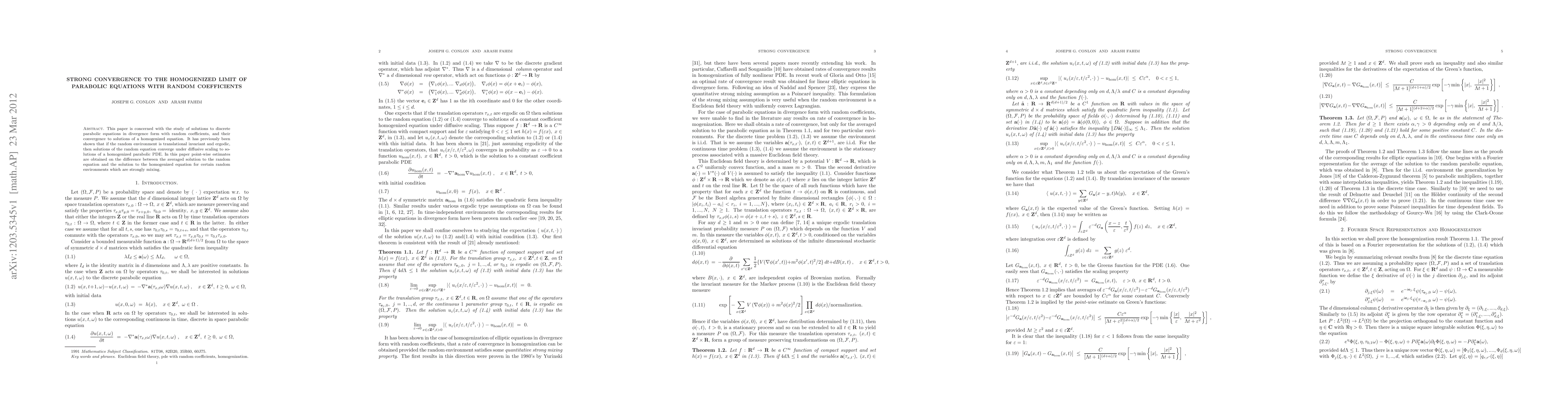 This paper is concerned with the study of solutions to discrete parabolic equations in divergence form with random coefficients, and their convergence to solutions of a homogenized equation. It has previously been shown that if the random environment is translational invariant and ergodic, then solutions of the random equation converge under diffusive scaling to solutions of a homogenized parabolic PDE. In this paper point-wise estimates are obtained on the difference between the averaged solution to the random equation and the solution to the homogenized equation for certain random environments which are strongly mixing.