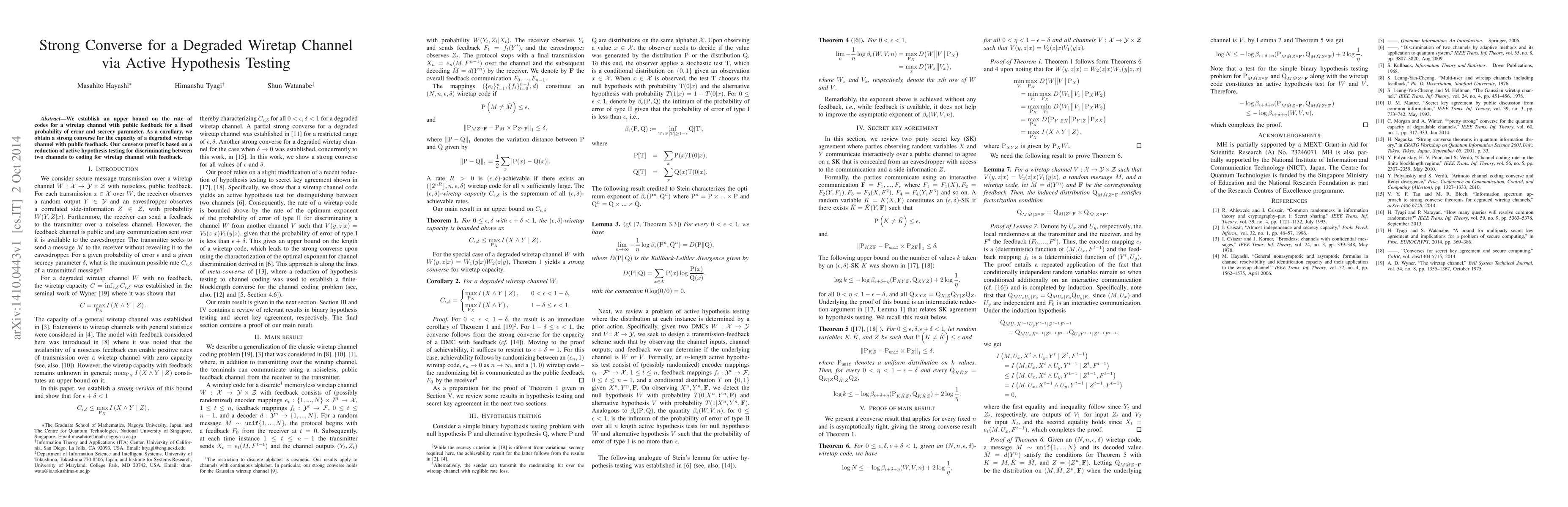 This paper establishes an upper bound on the coding rate for a wiretap channel with public feedback, ensuring a fixed error probability and secrecy level. The study also proves a strong converse for the capacity of degraded wiretap channels with public feedback, leveraging active hypothesis testing techniques.