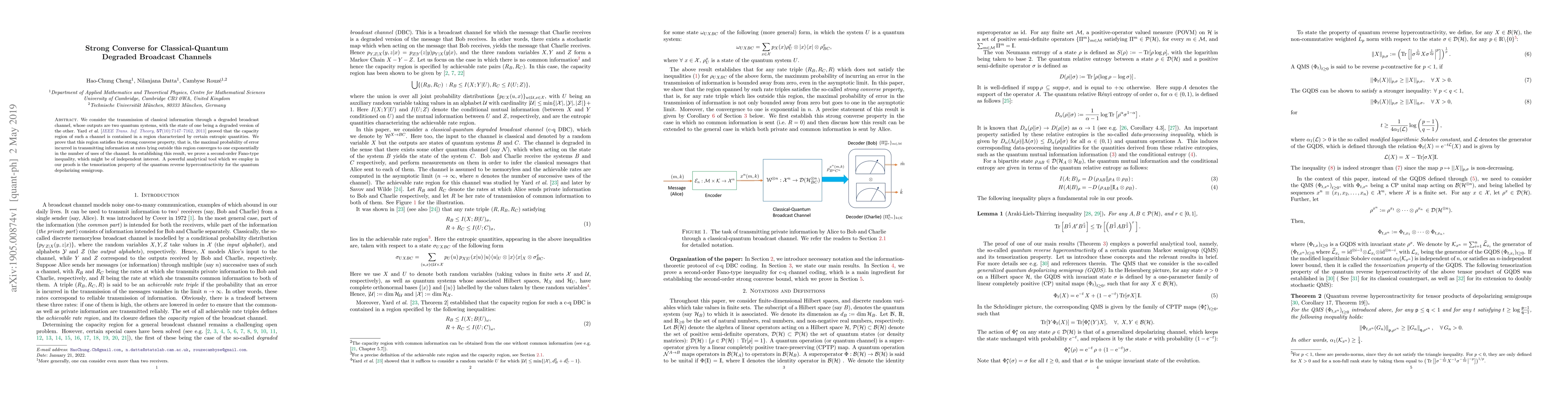 This paper proves the strong converse property for classical-quantum degraded broadcast channels, demonstrating that error probabilities exponentially increase for transmission rates outside the capacity region. The authors achieve this by establishing a second-order Fano-type inequality and leveraging the tensorization property of quantum reverse hypercontractivity.