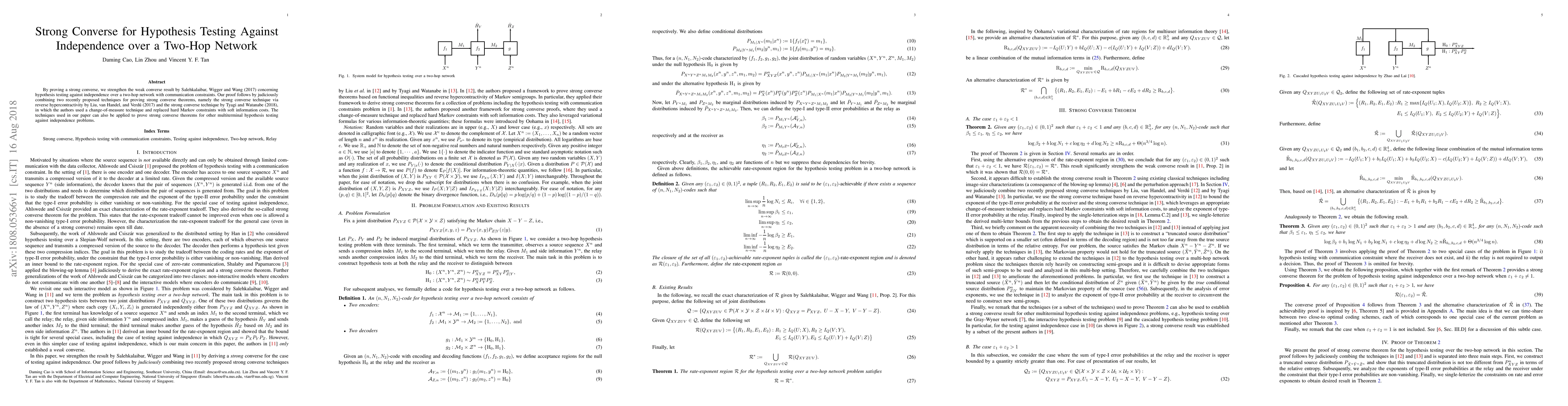 This paper strengthens the weak converse result for hypothesis testing against independence over a two-hop network by combining techniques from reverse hypercontractivity and change-of-measure methods. The proposed techniques can also be extended to other multiterminal hypothesis testing scenarios.