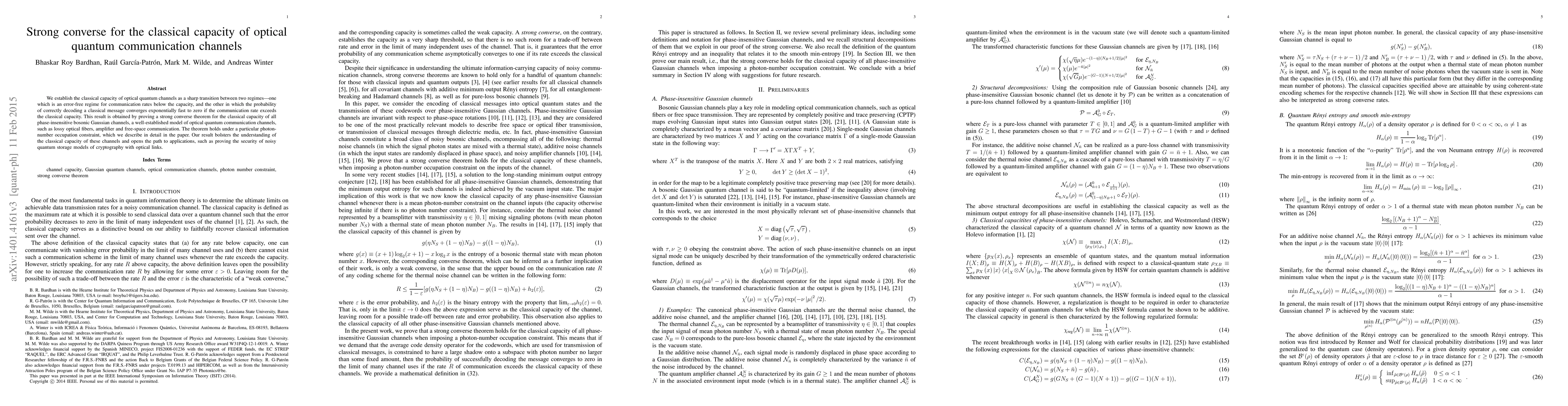 This paper establishes a strong converse theorem for the classical capacity of optical quantum communication channels, demonstrating a sharp transition between error-free communication and exponential error rates when communication rates exceed the capacity. The findings apply to phase-insensitive bosonic Gaussian channels, enhancing the understanding of these channels and their potential applications in secure quantum communication.