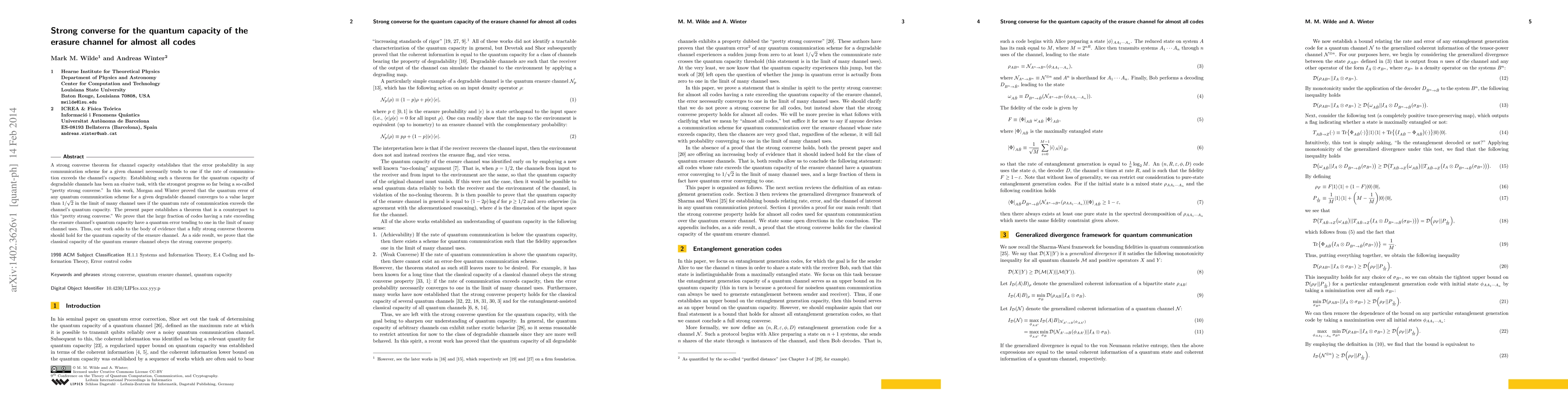 A strong converse theorem for channel capacity establishes that the error probability in any communication scheme for a given channel necessarily tends to one if the rate of communication exceeds the channel's capacity. Establishing such a theorem for the quantum capacity of degradable channels has been an elusive task, with the strongest progress so far being a so-called "pretty strong converse". In this work, Morgan and Winter proved that the quantum error of any quantum communication scheme for a given degradable channel converges to a value larger than $1/\sqrt{2}$ in the limit of many channel uses if the quantum rate of communication exceeds the channel's quantum capacity. The present paper establishes a theorem that is a counterpart to this "pretty strong converse". We prove that the large fraction of codes having a rate exceeding the erasure channel's quantum capacity have a quantum error tending to one in the limit of many channel uses. Thus, our work adds to the body of evidence that a fully strong converse theorem should hold for the quantum capacity of the erasure channel. As a side result, we prove that the classical capacity of the quantum erasure channel obeys the strong converse property.