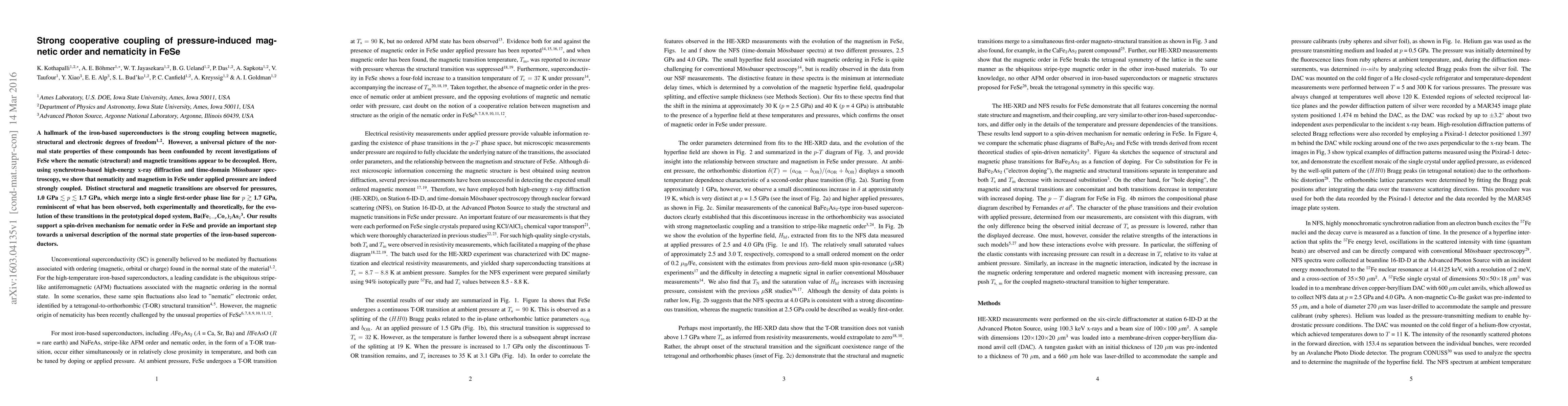 This paper demonstrates that nematicity and magnetism in FeSe are strongly coupled under pressure, merging into a single phase transition at high pressures, akin to Ba(Fe[1-x]Co[x])2As2. The findings support a spin-driven mechanism for nematic order and advance the understanding of iron-based superconductors' normal state properties.