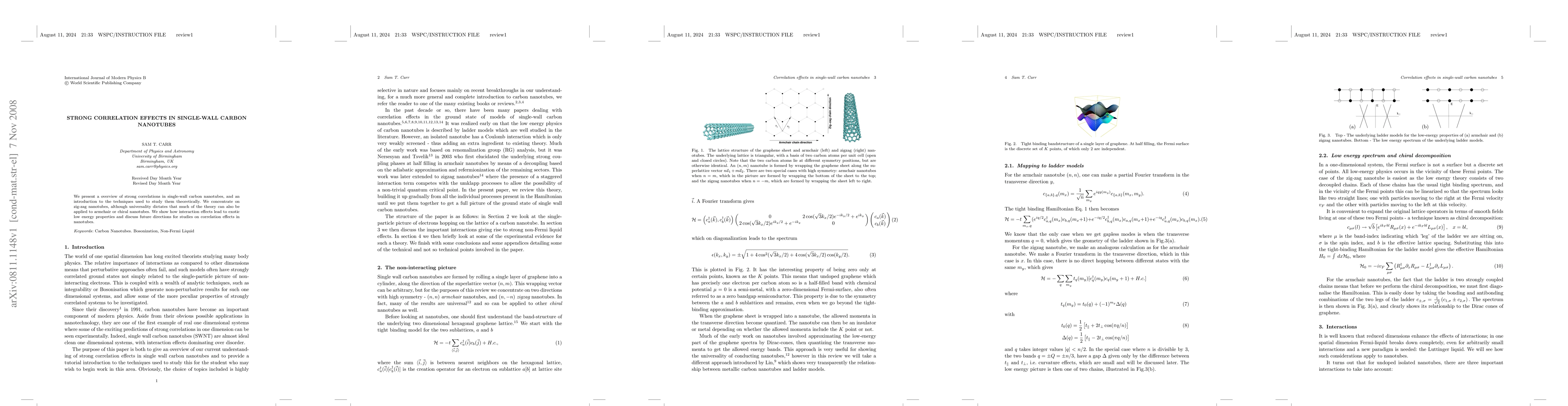 This paper provides an overview of strong correlation effects in zigzag single-wall carbon nanotubes, highlighting theoretical techniques and demonstrating how interaction effects yield unique low-energy properties. It also discusses the broader applicability of the theory to armchair and chiral nanotubes, and outlines future research directions.