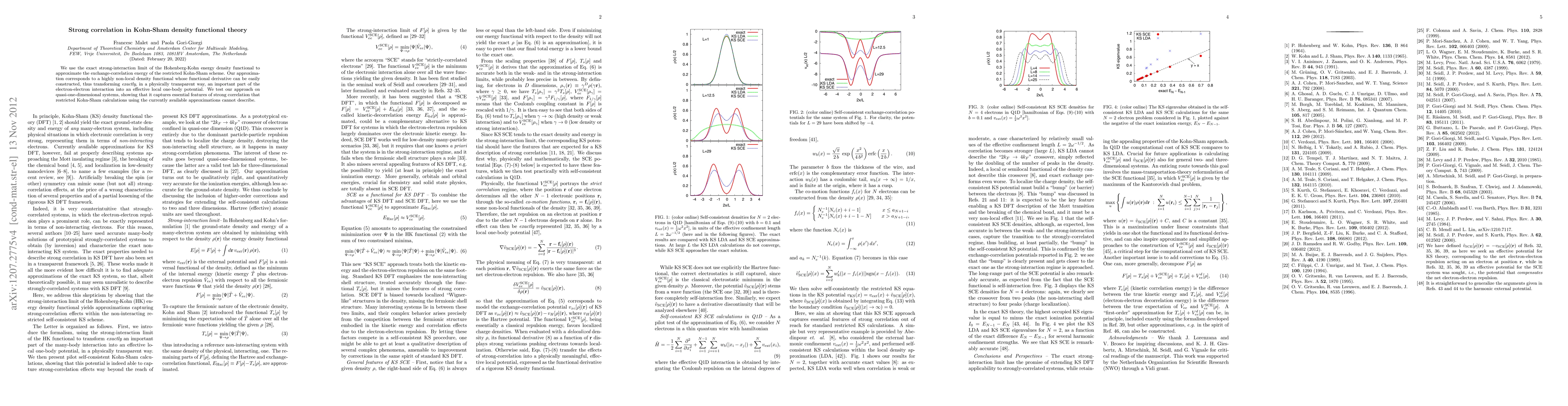 We use the exact strong-interaction limit of the Hohenberg-Kohn energy density functional to approximate the exchange-correlation energy of the restricted Kohn-Sham scheme. Our approximation corresponds to a highly non-local density functional whose functional derivative can be easily constructed, thus transforming exactly, in a physically transparent way, an important part of the electron-electron interaction into an effective local one-body potential. We test our approach on quasi-one-dimensional systems, showing that it captures essential features of strong correlation that restricted Kohn-Sham calculations using the currently available approximations cannot describe.
