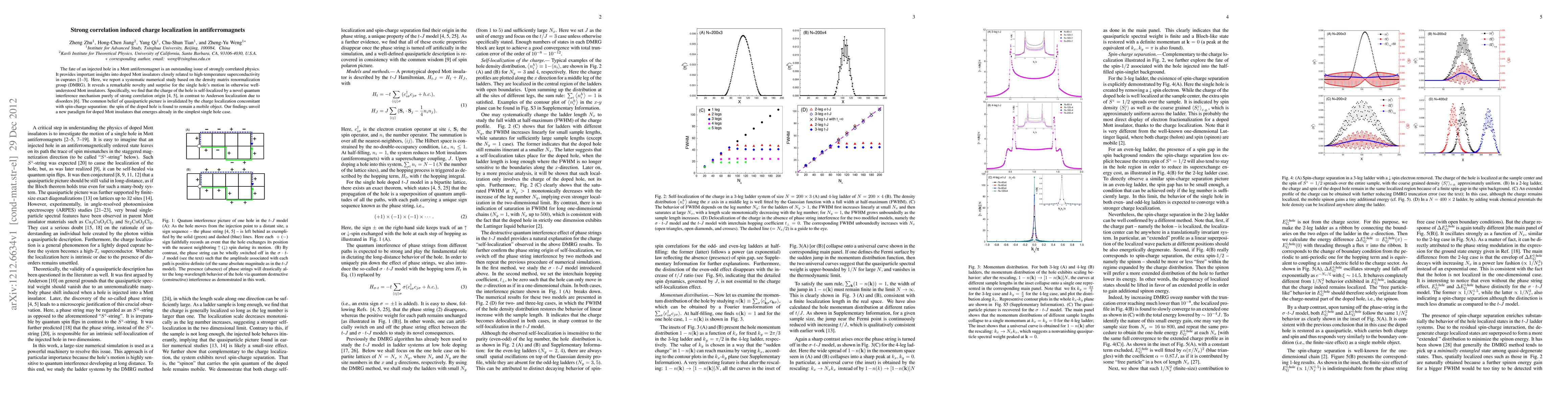This paper reports a numerical study using the density matrix renormalization group (DMRG) that reveals charge localization of a single hole in a Mott antiferromagnet due to a novel quantum interference mechanism driven by strong correlations, invalidating the quasiparticle picture and showing that the spin remains mobile. This discovery provides new insights into the behavior of doped Mott insulators.